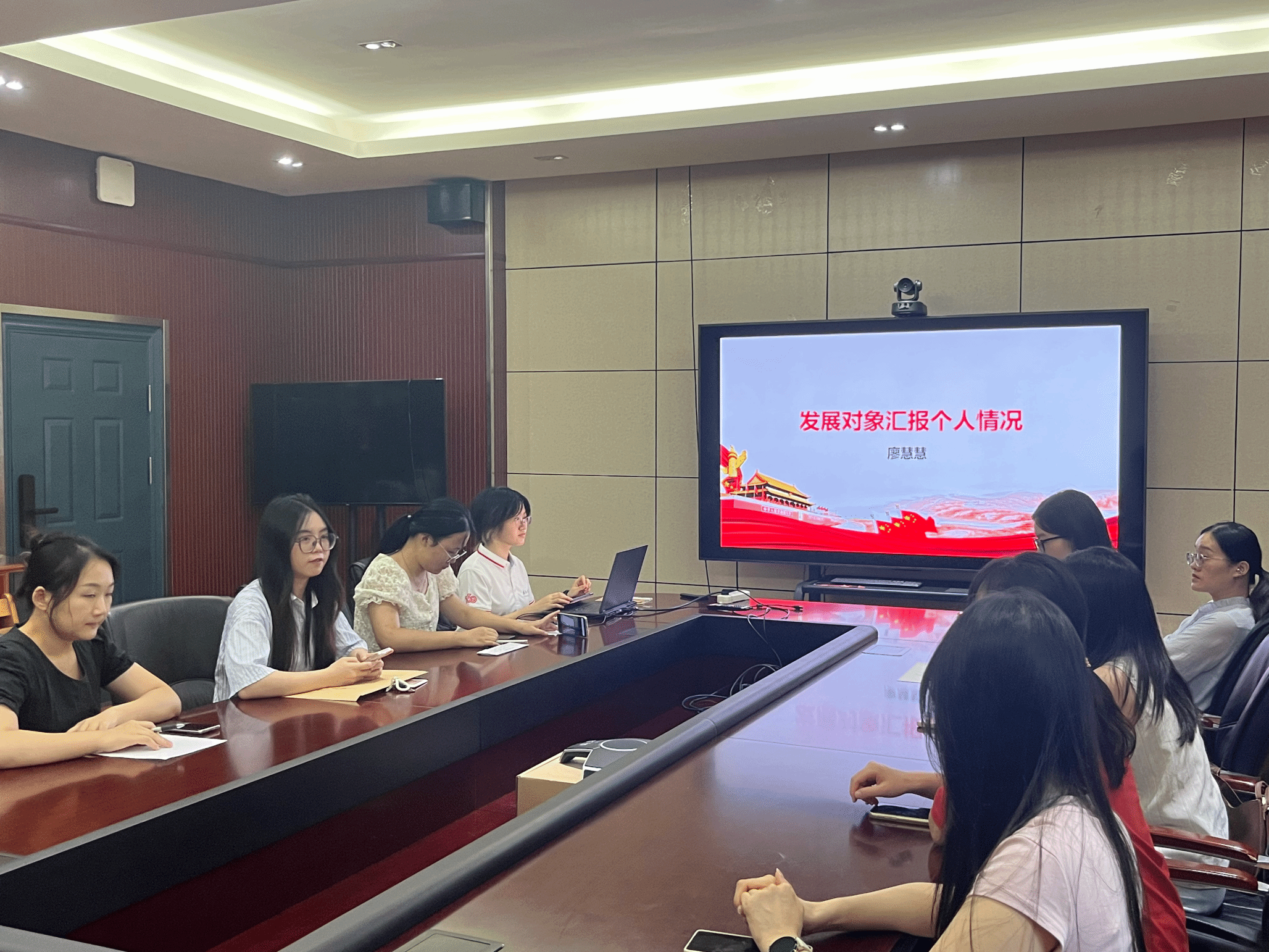 会议第一项,支部大会讨论了接收廖慧慧同志转为预备党员的问题。发展对象廖慧慧同志就自身情况、入党动机、学习情况等向党组织进行了汇报,入党介绍人李雨珊、王丹同志介绍发展对象有关情况,支委会进行审查情况报告。大家一致认为,廖慧慧同志严格遵守学校各项规章制度,在日常生活中能够参照党章规定,严格要求自己,做好本职工作。经支部大会无记名投票,全票表决通过,同意接收廖慧慧同志为中共预备党员。