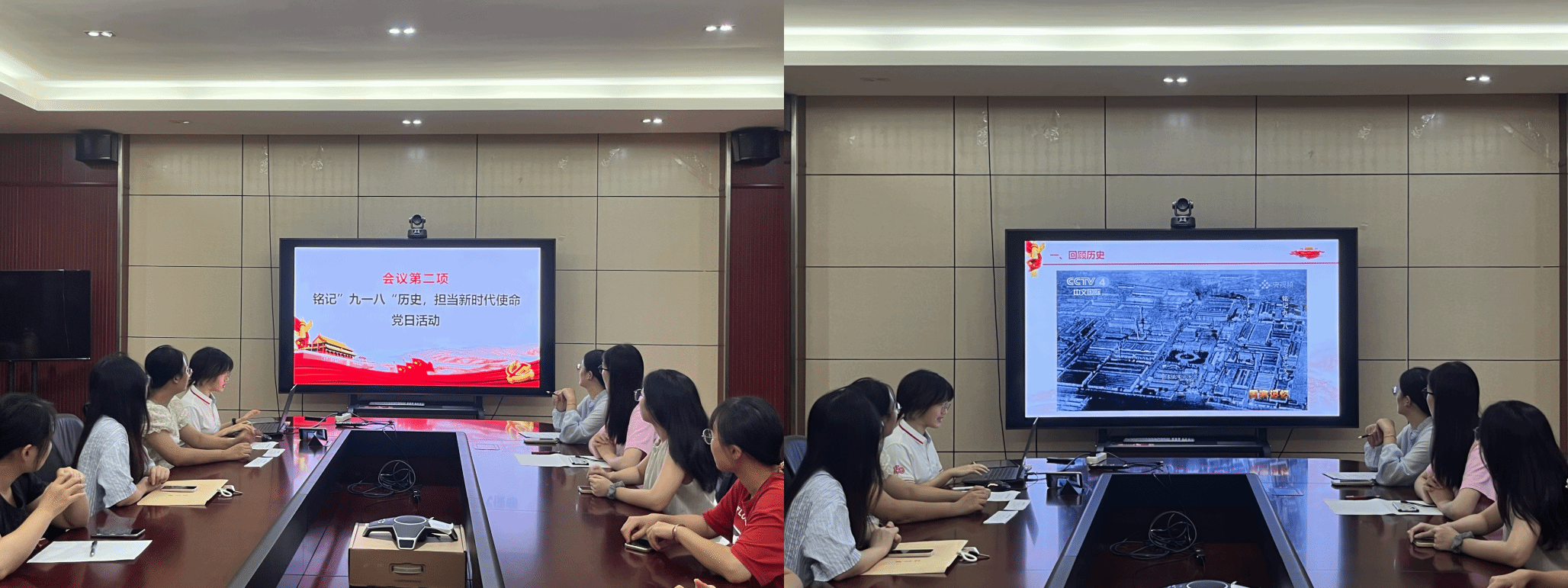 会议第二项,支部召开了铭记“九一八”历史,担当新时代使命主题党日活动。支部全体同志观看了《铭记九一八》纪录片,学习了先烈的英雄事迹。回望九一八,我们要树立历史思维、汲取历史教训、获得历史智慧、始终居安思危。作为新时代共产党员,我们必须牢记“落后就要挨打”的惨痛教训,探寻从沉沦到奋起的历史记忆,用实际行动肩负起时代赋予的使命。