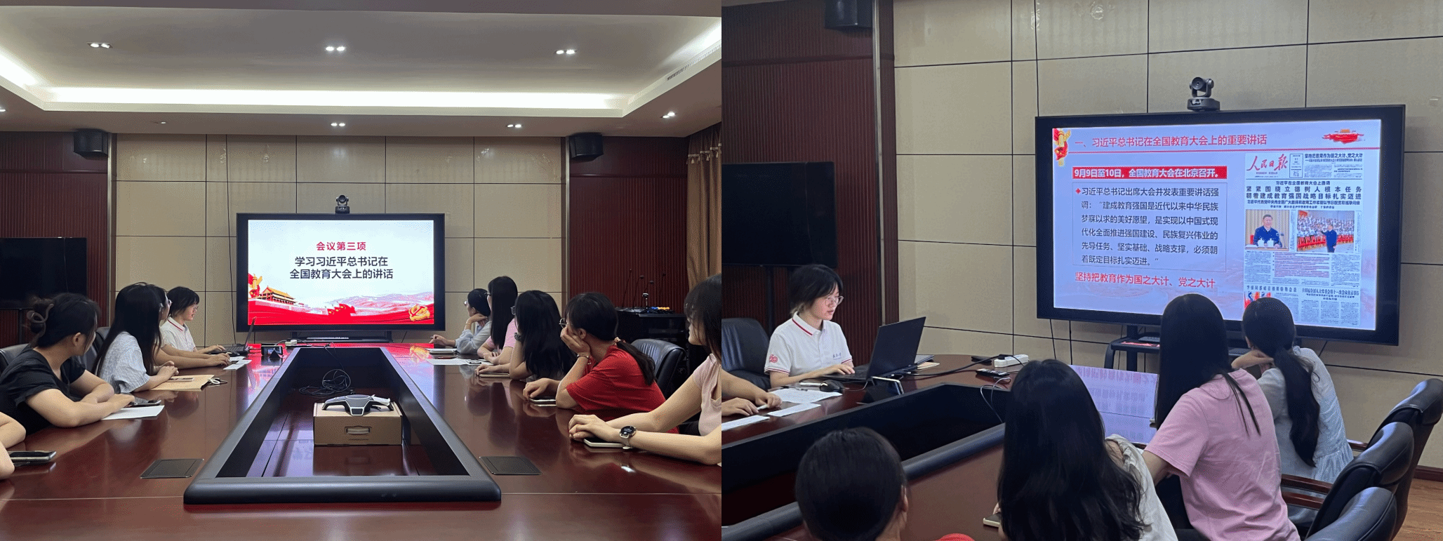 会议第三项,支部组织学习了习近平总书记在全国教育大会上的讲话,习近平总书记出席大会并发表重要讲话强调:建成教育强国是近代以来中华民族梦寐以求的美好愿望,是实现以中国式现代化全面推进强国建设、民族复兴伟业的先导任务、坚实基础、战略支撑,必须朝着既定目标扎实迈进。党和国家对青年学生高度重视,我们要牢记习近平总书记嘱托,奋楫笃行,挺膺担当,为建设教育强国贡献青春力量。
