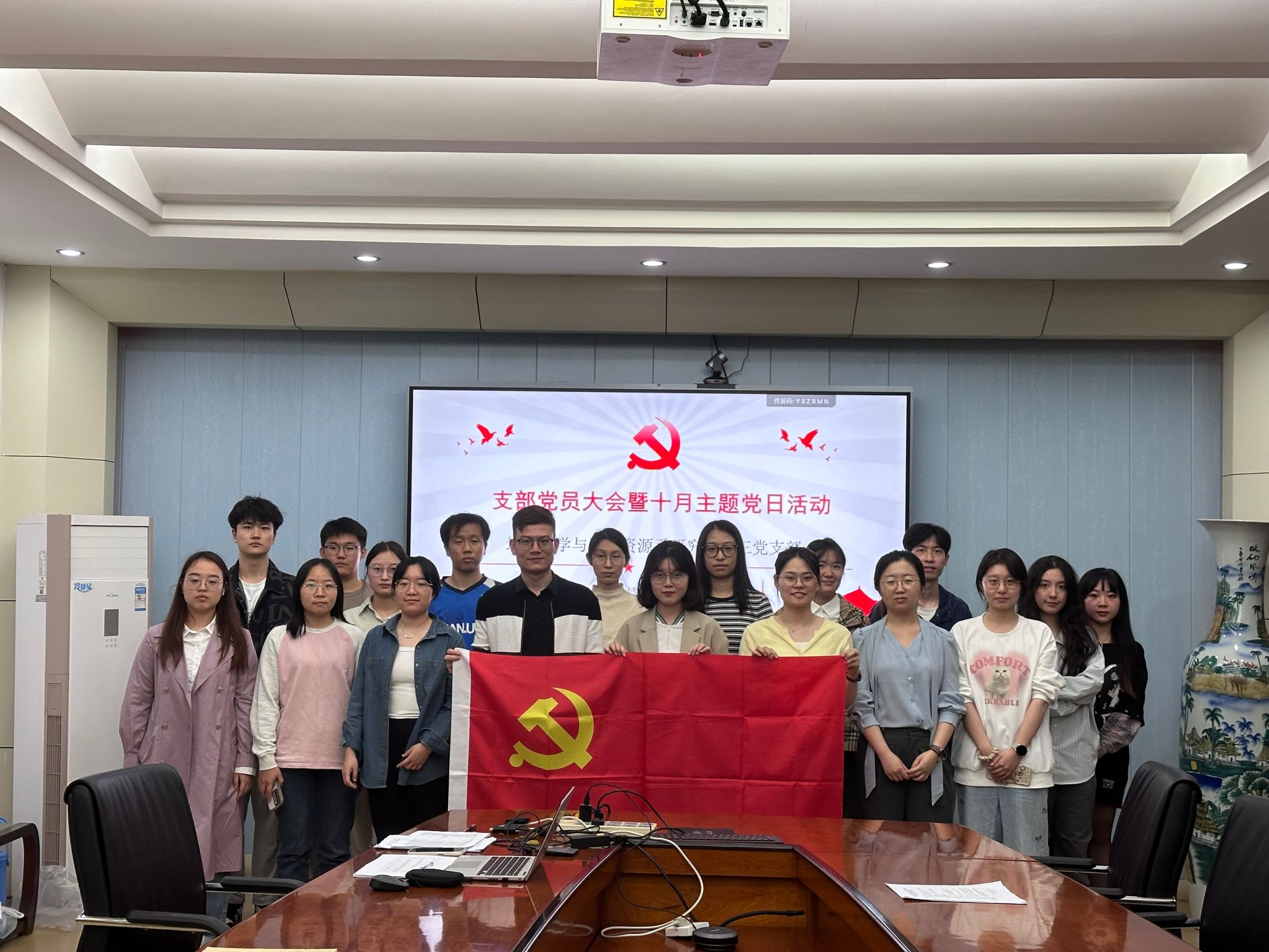 2024年10月14日晚上19点30分,地理科学与国土资源系研究生第三党支部党员大会暨十月主题党日活动于资环色情直播app301会议室召开。本次会议由支部书记傅梦静同志主持,会议共有三项内容:一是圆满完成了中国共产党色情直播app