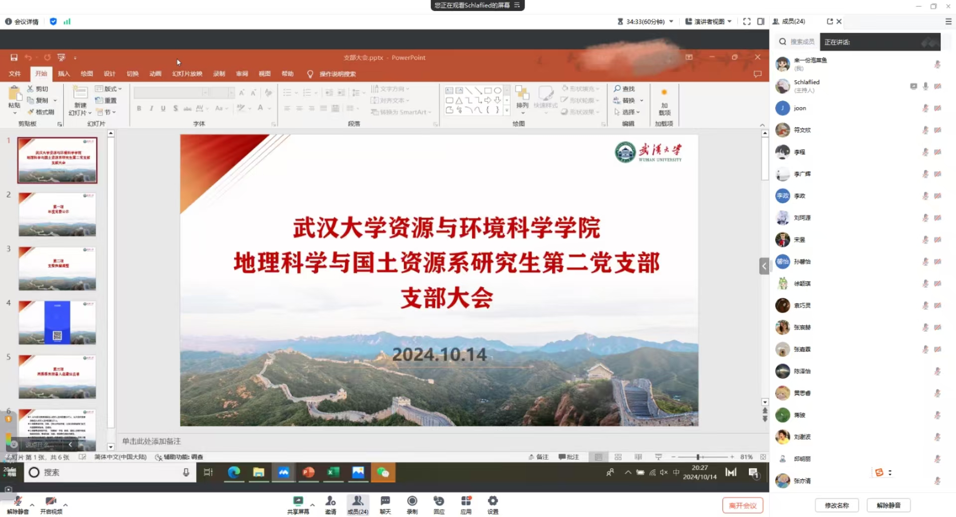 至此,地理科学与国土资源系研究生第二党支部大会圆满结束。