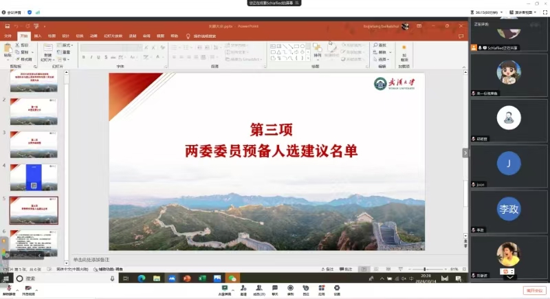 会议第一项,支部书记许澎同志线上宣读了2023年度中管、省管、校管党费文件,确保每位党员都能深刻理解党费的来源、去向以及使用原则。许澎同志还进一步强调了党费收缴、使用和管理的重要性,指出这是加强党的组织建设、增强党员党性观念的具体体现。