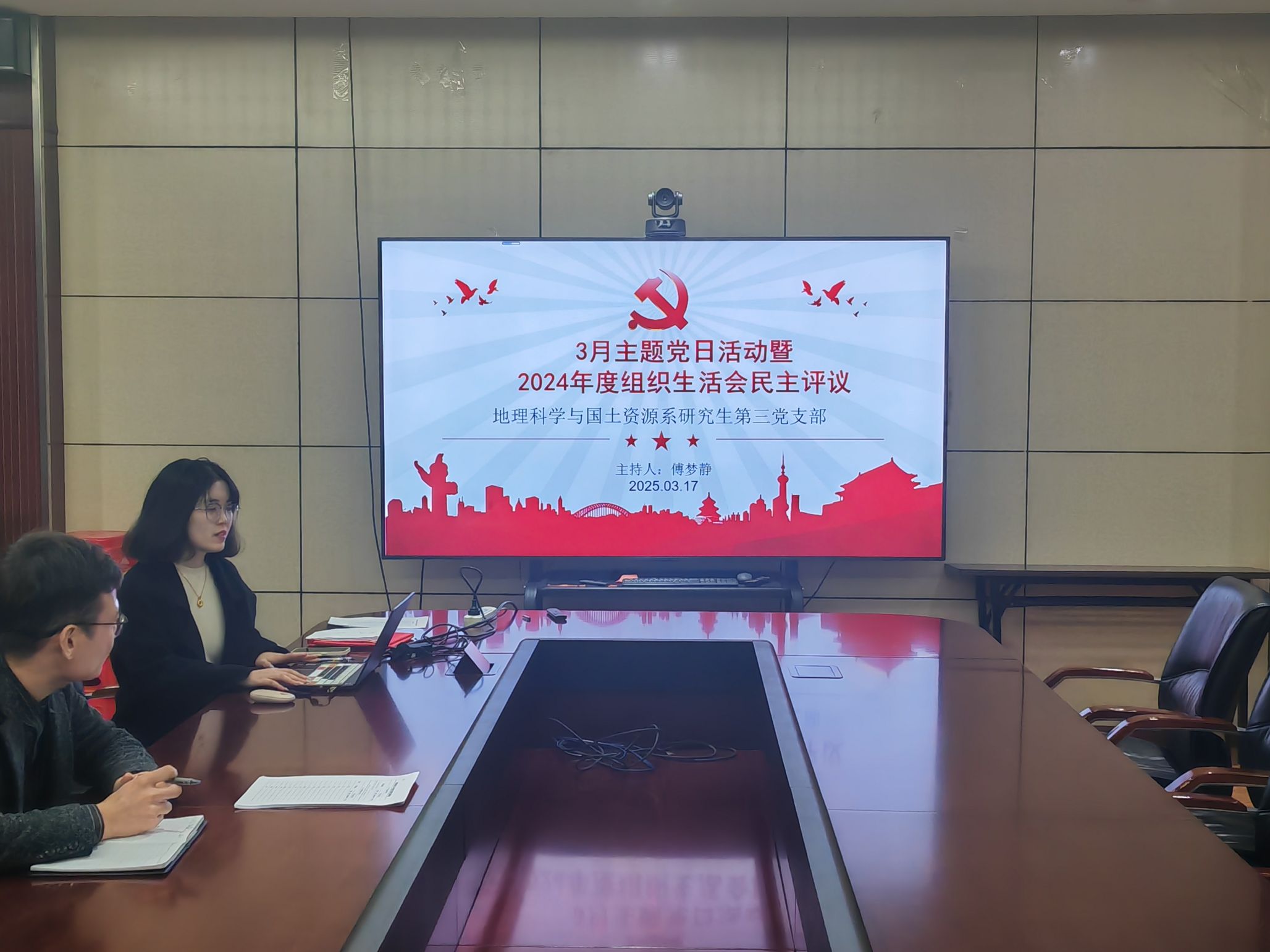 2025年3月17日19:30,地理科学与国土资源系研究生第三党支部于色情直播app320会议室召开3月主题党日活动暨2024年度组织生活会。本次会议由支部书记傅梦静同志主持。