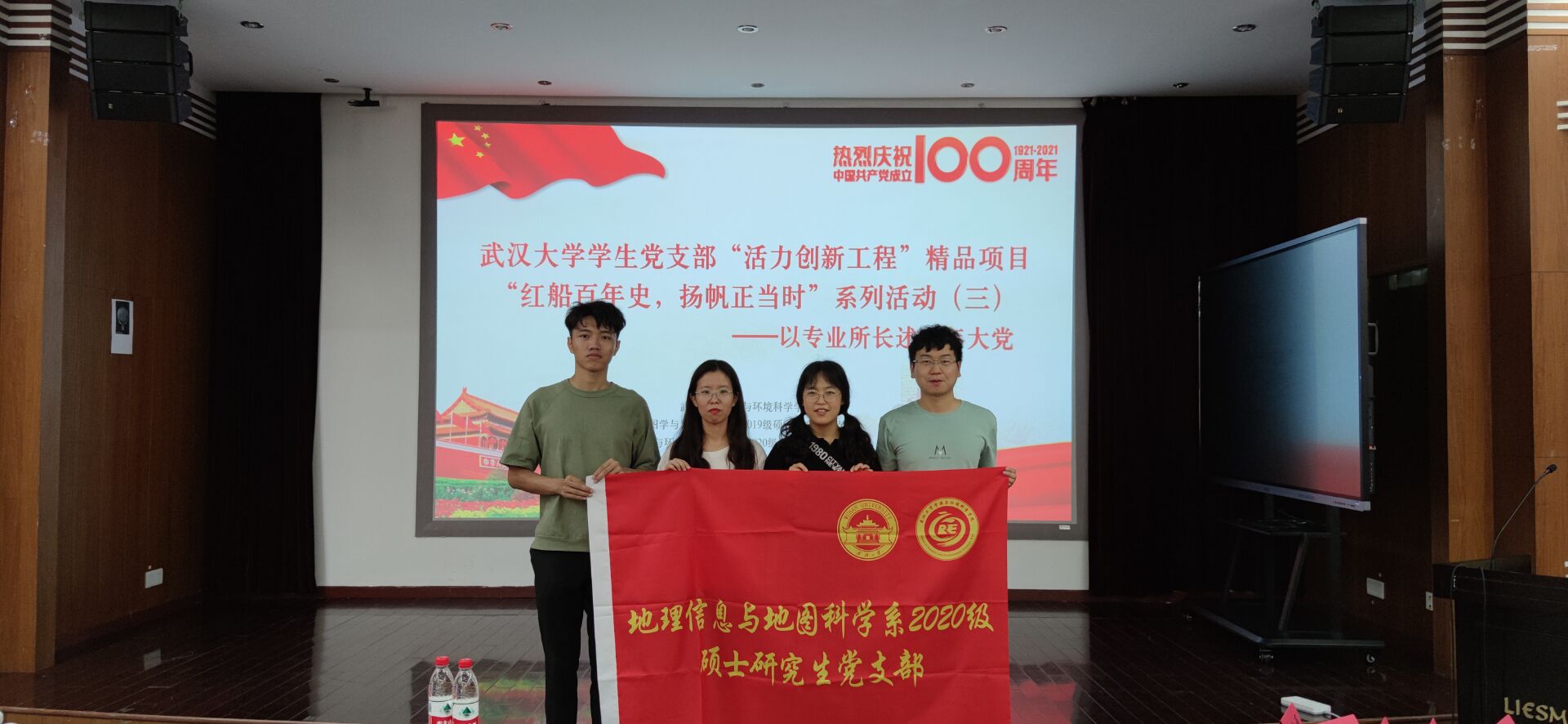 2020-2021年学生党支部“活力创新工程”精品项目“红船百年史,扬帆正当时”大学生说百年大党系列活动第三篇——“以专业所长述百年大党”活动于6月1日成功举办。地理信息与地图科学系2020级硕士研究生党支部与团支部联合地图学与地理信息系统2019级硕士研究生党支部进行了“献礼100周年系列多媒体电子地图”的成果展示,经过专家从展现内容、语言表达能力及会场效果三方面的综合评价及打分,最终获得了三等奖的优异成绩。