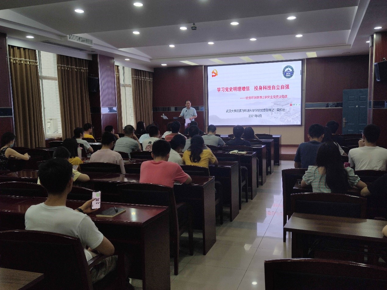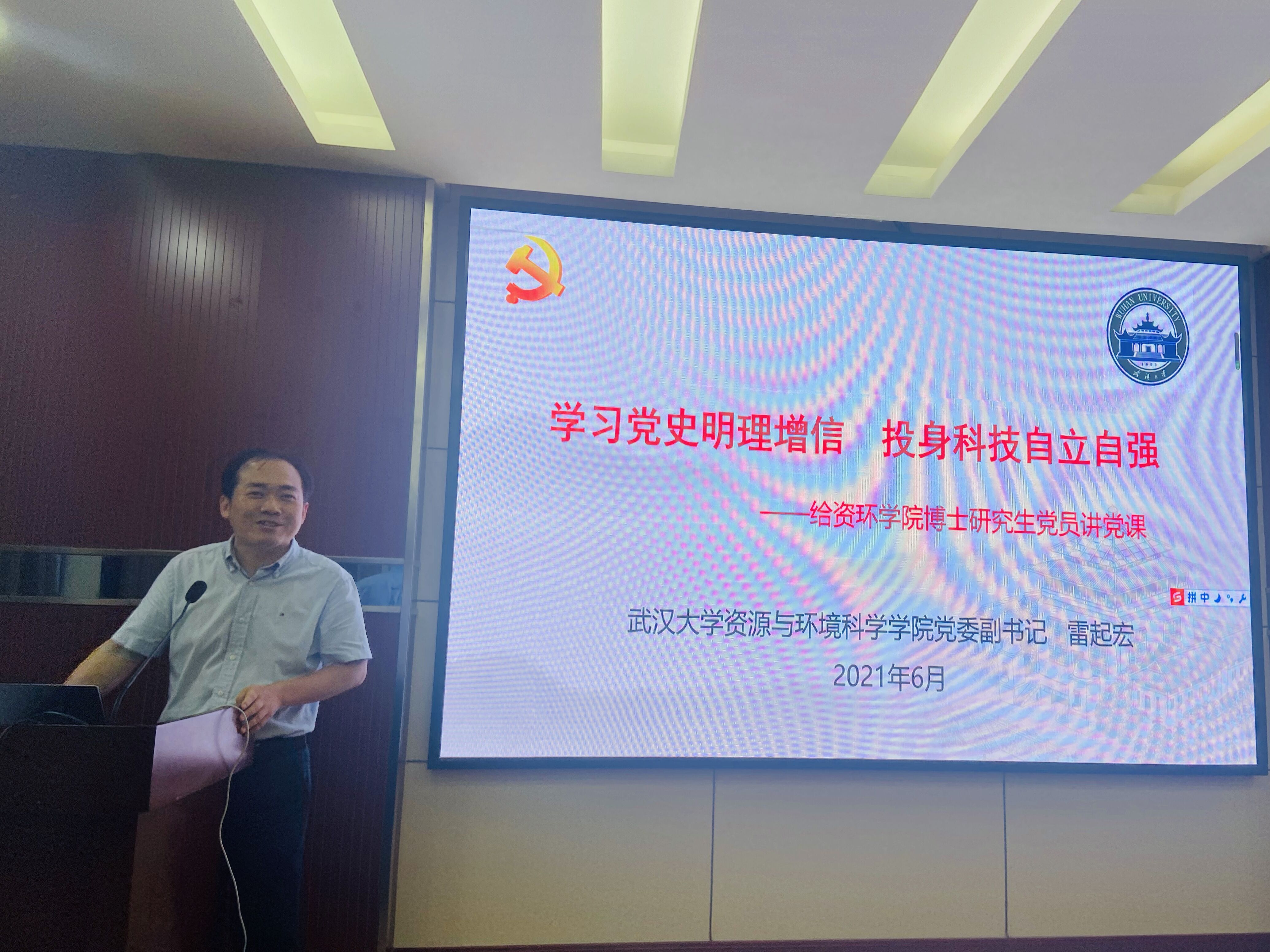 党委副书记雷起宏老师为2018、2019和2020级地学类博士研究生党支部以及地学类博士研究生联合党支部的党员们开展 “学习党史明理增信,投身科技自立自强”主题党课,并进行座谈会深入了解博士研究生的生活及学习状态。会议由研究生辅导员李韩老师主持。