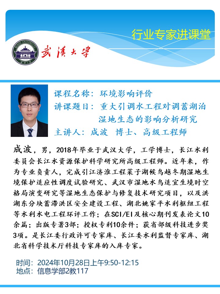 《环境影响评价》本科课程专家讲课:重大引调水工程对调蓄湖泊湿地生态的影响分析研究