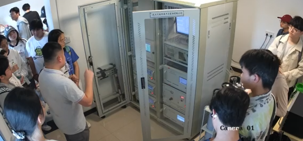 在实验教学中心吴东星老师的带领下,同学们首先参观了天兴洲监测站整体环境。吴老师围绕监测站建设背景、功能布局以及辐射观测系统的基本原理与运行方式进行了系统讲解,使同学们对生态环境综合观测体系有了更加直观的认识。