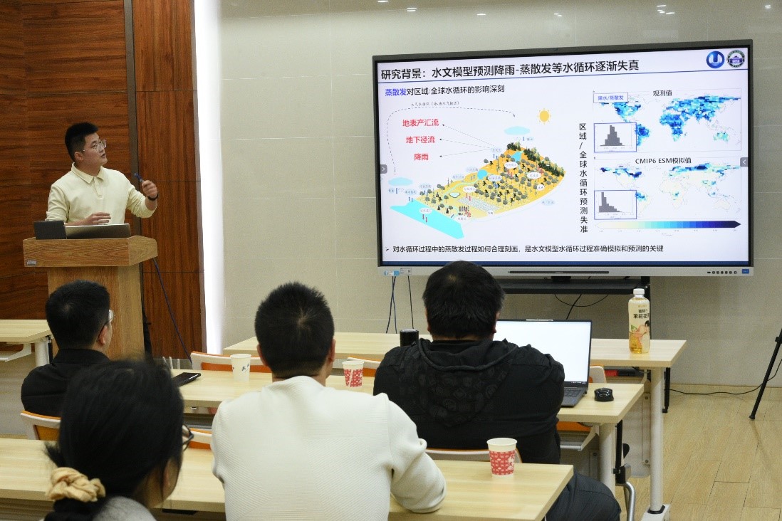 首位主讲人刘永工程师以气候变化加剧下生态水文循环系统稳定性降低、水文模型预测失真等现实问题为切入点,重点分享了两项核心科研成果。其一,构建考虑植物气孔和非气孔协调调节的MCHC气孔优化模型,该模型可准确模拟环境胁迫下植物气孔导度与光合能力的协同响应,合理反映植物水力效率与安全的权衡。其二,针对传统SWAT模型对植被蒸腾作用描述偏差的问题,提出耦合气孔优化模型的SWAT模型,显著提升了干旱条件下土壤水分、蒸散发及流域日径流过程的模拟精度,有效缓解了传统模型“虚假水循环分量”的问题。讲座中,他还提及未来研究将聚焦水循环要素差异对氮磷污染物迁移的影响,以及水环境风险预警的优化方向。