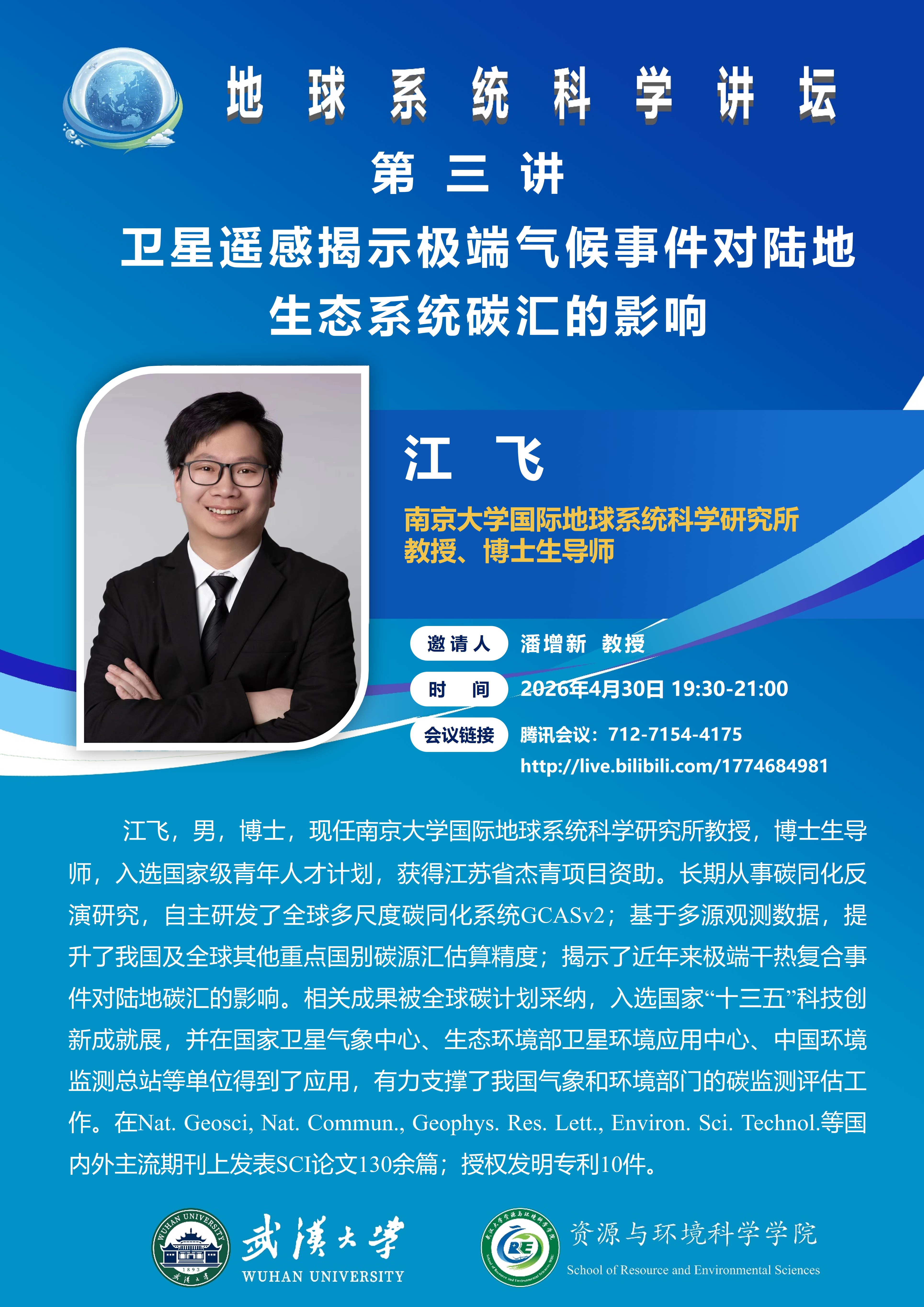 【地球系统科学讲坛】第三讲:卫星遥感揭示极端气候事件对陆地生态系统碳汇的影响