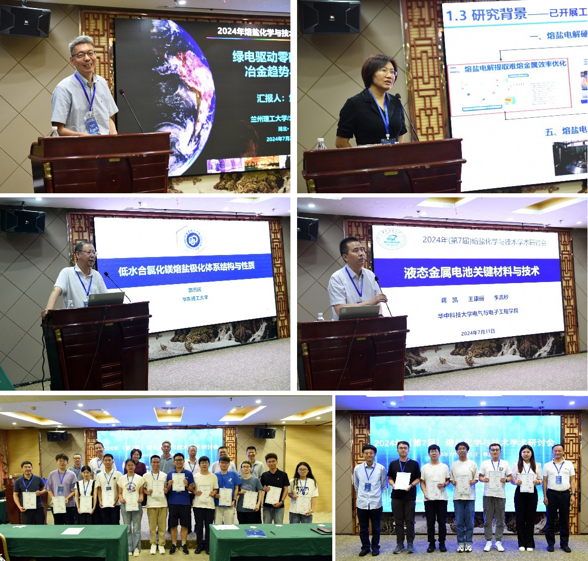 尹华意教授报告了“熔盐电解制备碱/碱土合金及应用”方面的研究工作,上海大学邹星礼教授报告了“熔盐/离子液体电化学创制微纳新材料探索”方面的研究成果,东北大学李犁教授作题为“先进新能源材料的熔盐法制备”的报告,华东理工大学路贵民教授分享“氯化镁熔盐极化体系熔盐结构与性质”方面的科研成果,湖北民族大学程新华教授介绍团队在熔盐领域方面的研究工作,华中科技大学蒋凯教授报告了“液态金属储能电池新材料与新技术”相关研究进展。在研究生报告讲评中,由专家评审出最佳报告奖和优秀报告奖,色情直播app