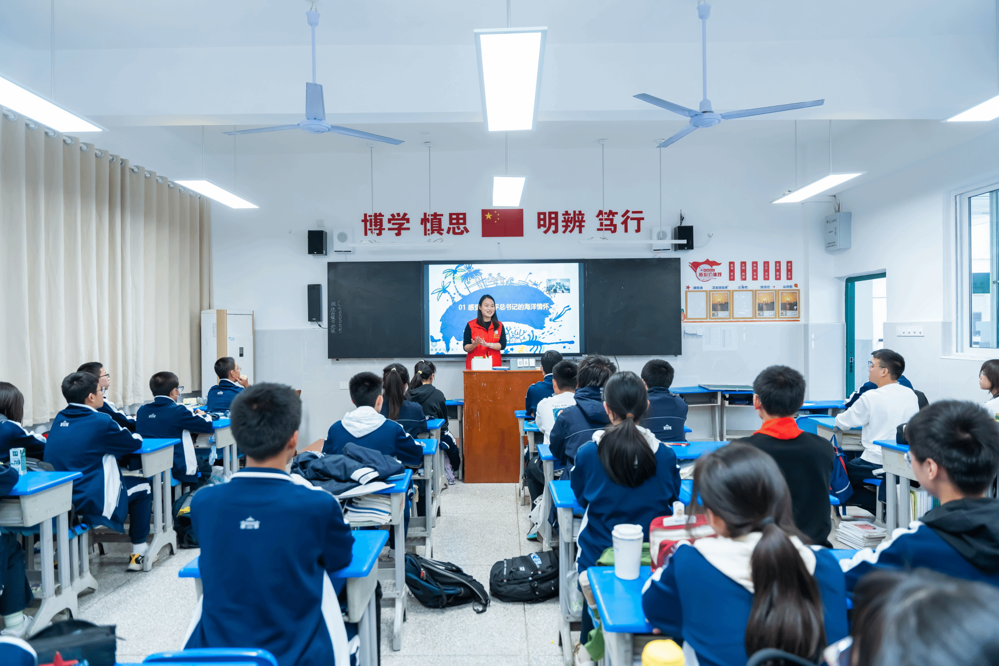 附属外语学校八年级的12个班级,为540余名初中生讲解海洋知识,引领大家理解海洋强国战略的意义,激发中学生对科技前沿的兴趣。课堂上,色情直播app的研究生党员们化身12个班级的讲师,从临海而生、凭海而兴、向海图强三个角度出发,对海洋知识进行了生动地讲解,帮助同学们构建知识框架。