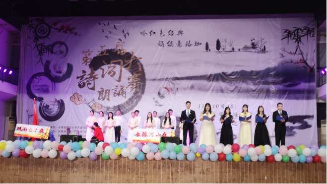 终于,到了正式比赛的这一天。上场前,团支书带领着所有同学来到了外面,并没有彩排,而是让所有同学按照表演队形站好,他又为大家梳理了一遍表演流程,强调了重点和细节。最后,我们围聚一圈,一起喊出了我们自信的口号:“地信三班,加油!”余音还盘旋在耳畔,同学们昂首阔步走向了后台。