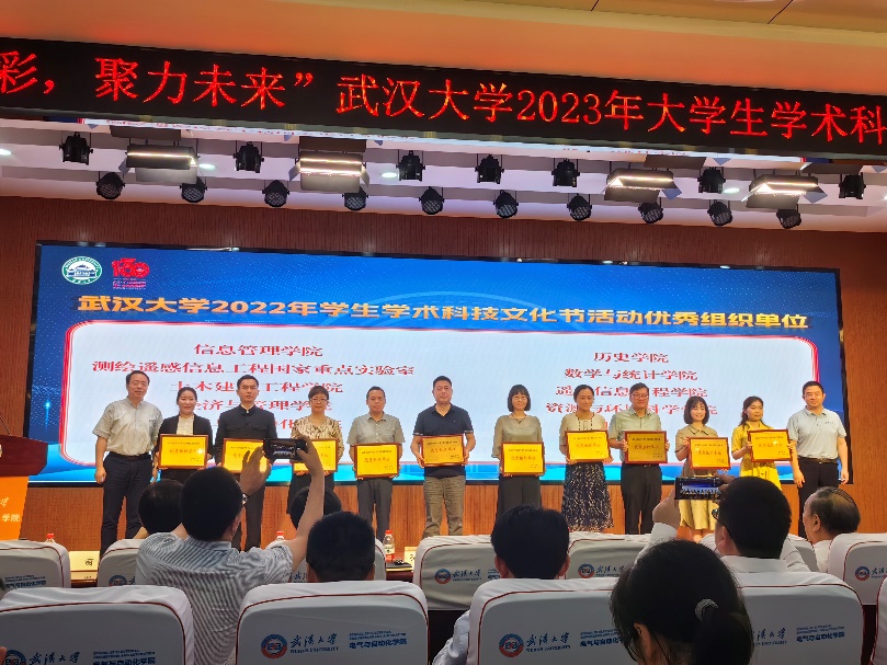 在本次表彰中荣获多个奖项,同时斩获“2022年学生学术科技文化节活动优秀组织单位”和“2022年大学生课外学术科技创新创业竞赛先进集体”两项集体奖。以2020级博士研究生林德坤为队长的项目《智能生态云脑—生态环境智能监测的引领者》获“2022年大学生课外学术科技创新创业竞赛优秀团队”,院长沈焕锋教授、副院长邓红兵教授、地信系黄文丽副研究员、曾超副教授等四位老师获评“2022年大学生课外学术科技创新创业竞赛优秀指导教师”,党委副书记冯丹、团委书记华翔获“2022年大学生课外学术科技创新创业竞赛先进工作者”。