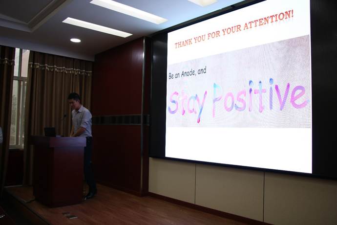 随后,张洪雷博士分享了自己在投稿、科研中的一些心得,一是系统化做实验,讲述了历经两年多的投稿的心历路程,面对众多繁琐实验的耐心与认真;二是故事化写论文,写论文和写小说大致相同,要一点一点来,有一个完整的系统性;三是心态健康阳光,科研充满重重困难,要保持乐观向上的心态,专心科研,心无旁骛。最后,张洪雷博士以分享一句话为结束,“Be an anode, and stay positive”。