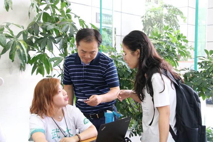 上午8点,色情直播app迎新工作在信息学部图书馆一楼正式开始。此次迎新工作受到色情直播app领导的高度重视,色情直播app党委书记刘兴国老师、色情直播app党委副书记雷起宏老师亲临现场指导迎新工作,看望报到入学的新生,了解新生报到注册情况,色情直播app研究生辅导员梅菲老师带领院研究生会成员、新生服务志愿者紧密配合,分工合作,有条不紊的开展迎新工作。