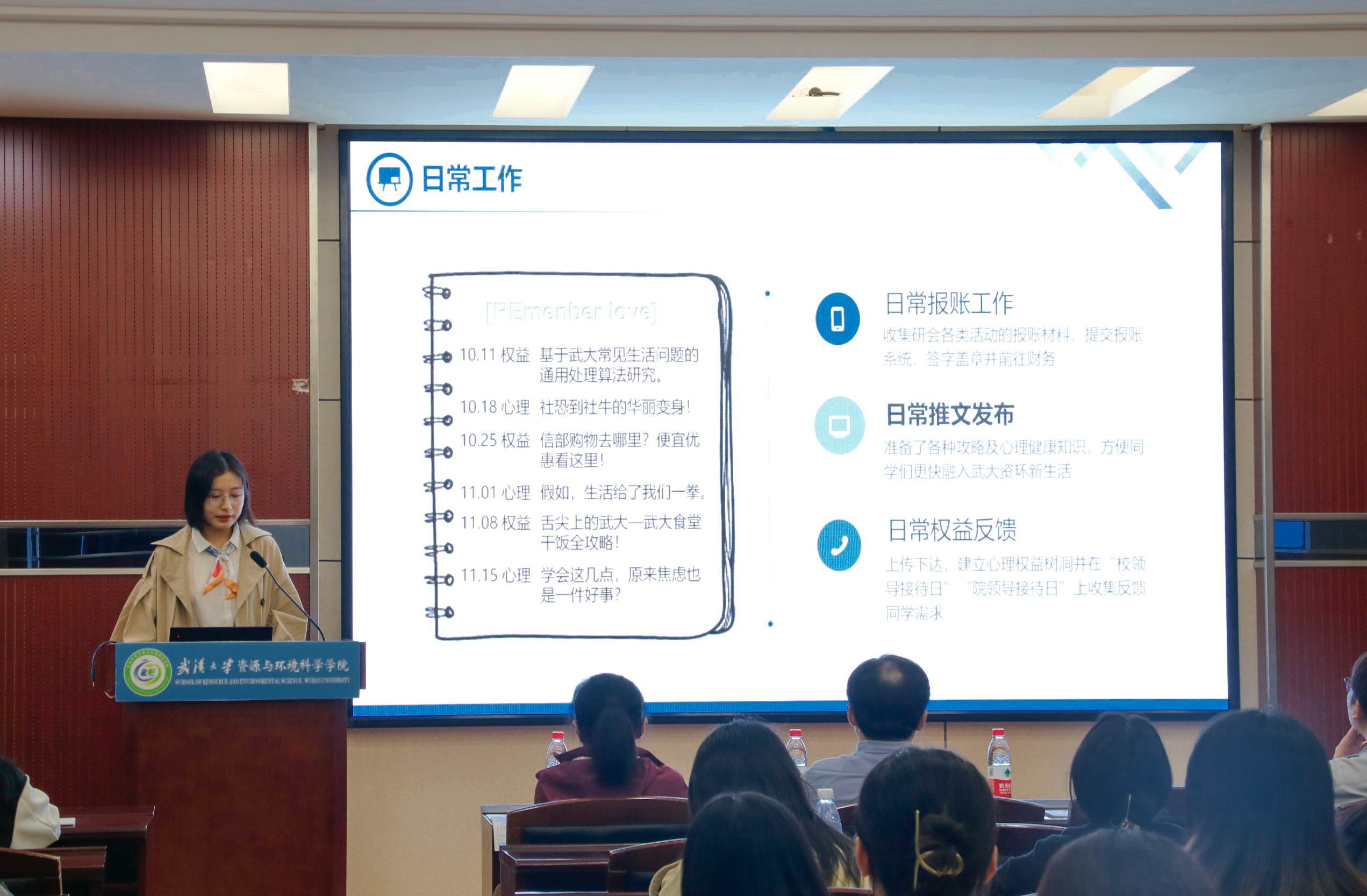 (2)学术部应加强学术讲座的层次和效率,借助全国和华中地区的学术交流平台,为同学们提供与校内外老师和朋辈进行科研交流的机会,扩大学术视野的同时为武大在国内乃至国际发声;借鉴学习其他高校的优秀经验,采他山之石,促发展提升,学术工作永远在路上。