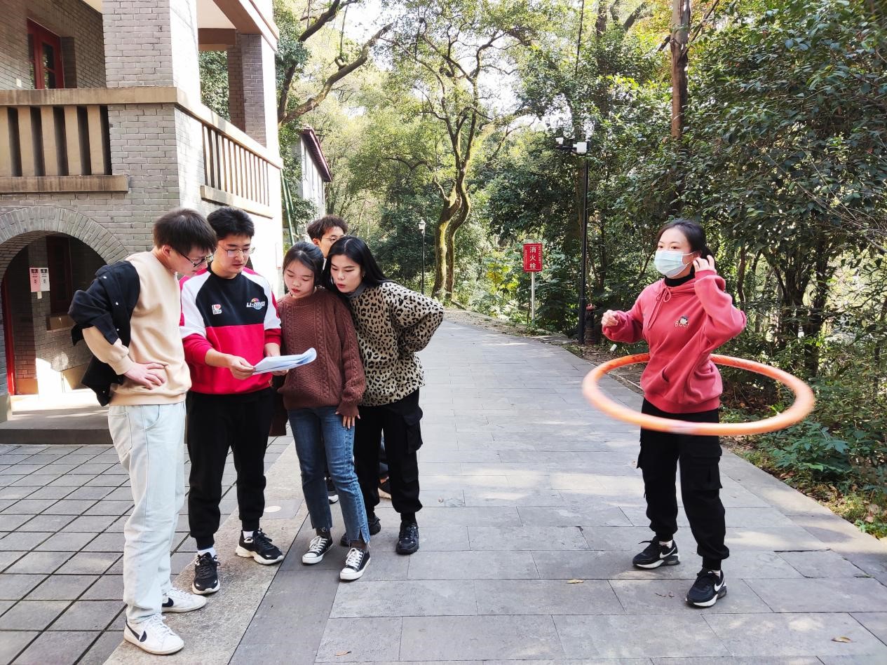 各队气喘吁吁地爬上了山,争分夺秒开始了呼啦圈转转转的游戏,围绕中国共产党历史上的重大事件、重要会议、党的思想理论等内容进行问答。18支队伍在游戏中的表现都相当精彩,竟无一队在转呼啦圈的过程中掉落,并同时出色地完成了答题任务。同学们纷纷表示:“感谢定向越野,让我们一睹伟人故居的风采!”