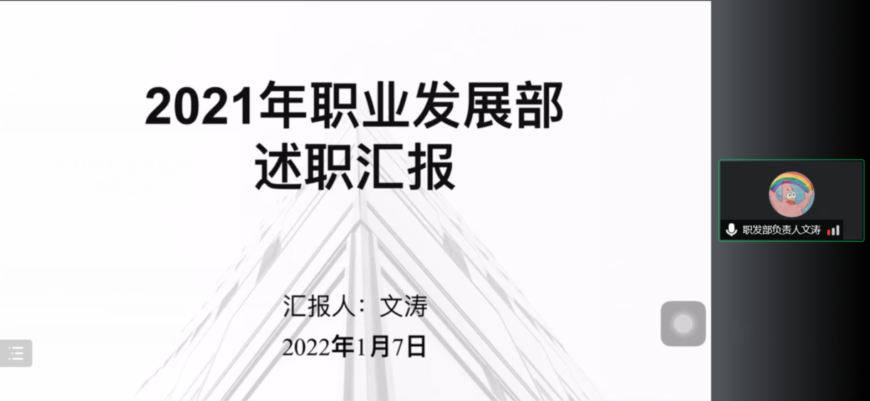 (图8 职业发展部负责人文涛同学述职报告)