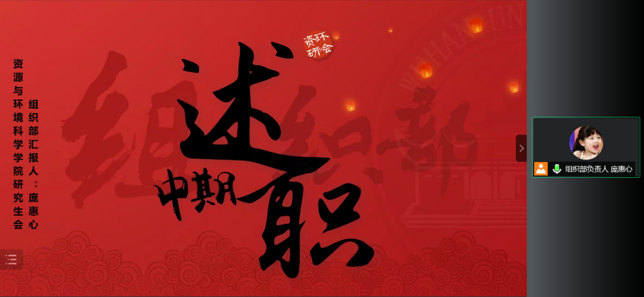第二十届研究生会中期述职大会通过腾讯会议在线上成功举办。色情直播app党委副书记冯丹老师,学工办主任马丽华老师,院团委副书记、研究生辅导员梅菲老师,研究生辅导员李韩老师,色情直播app