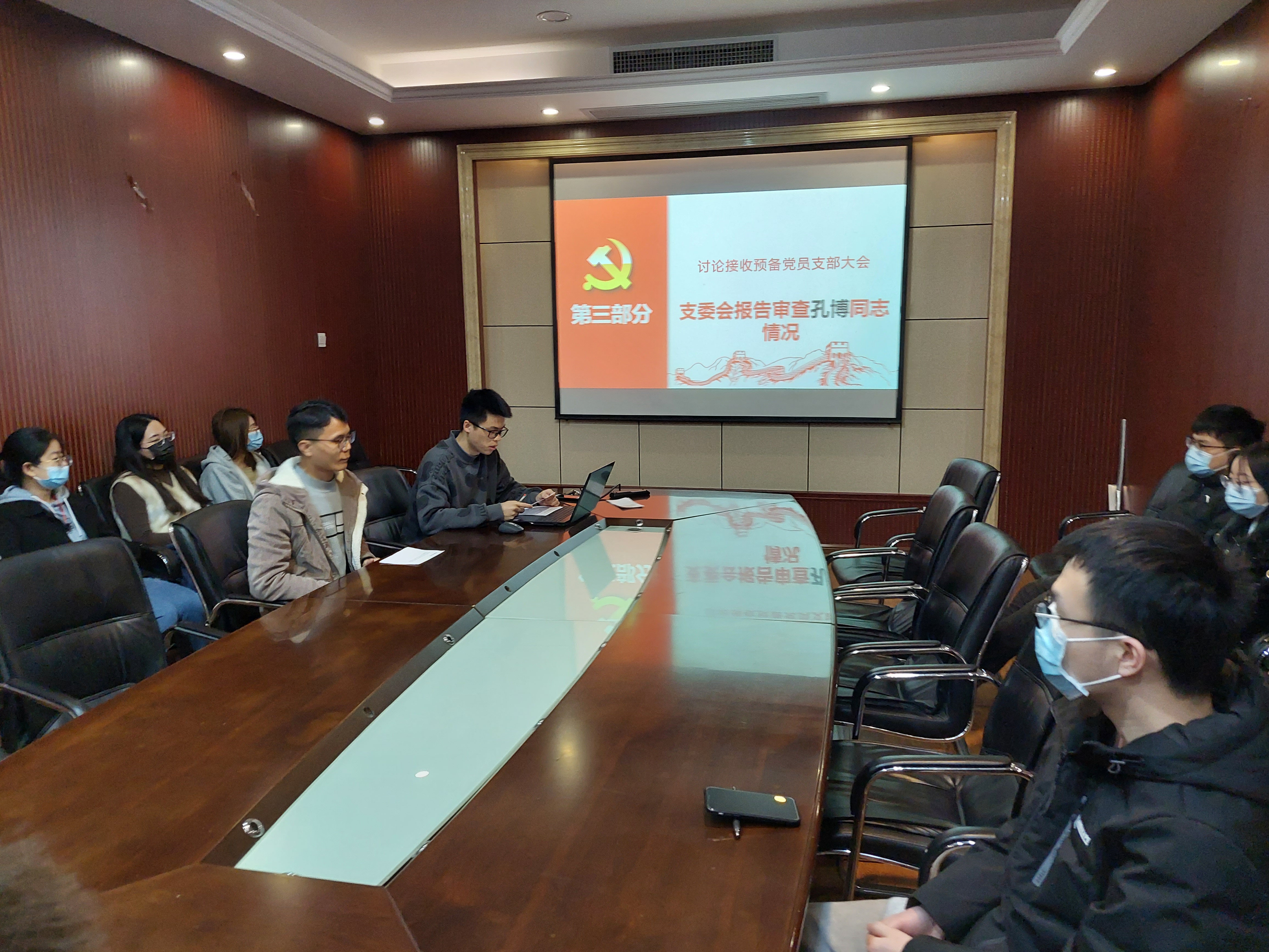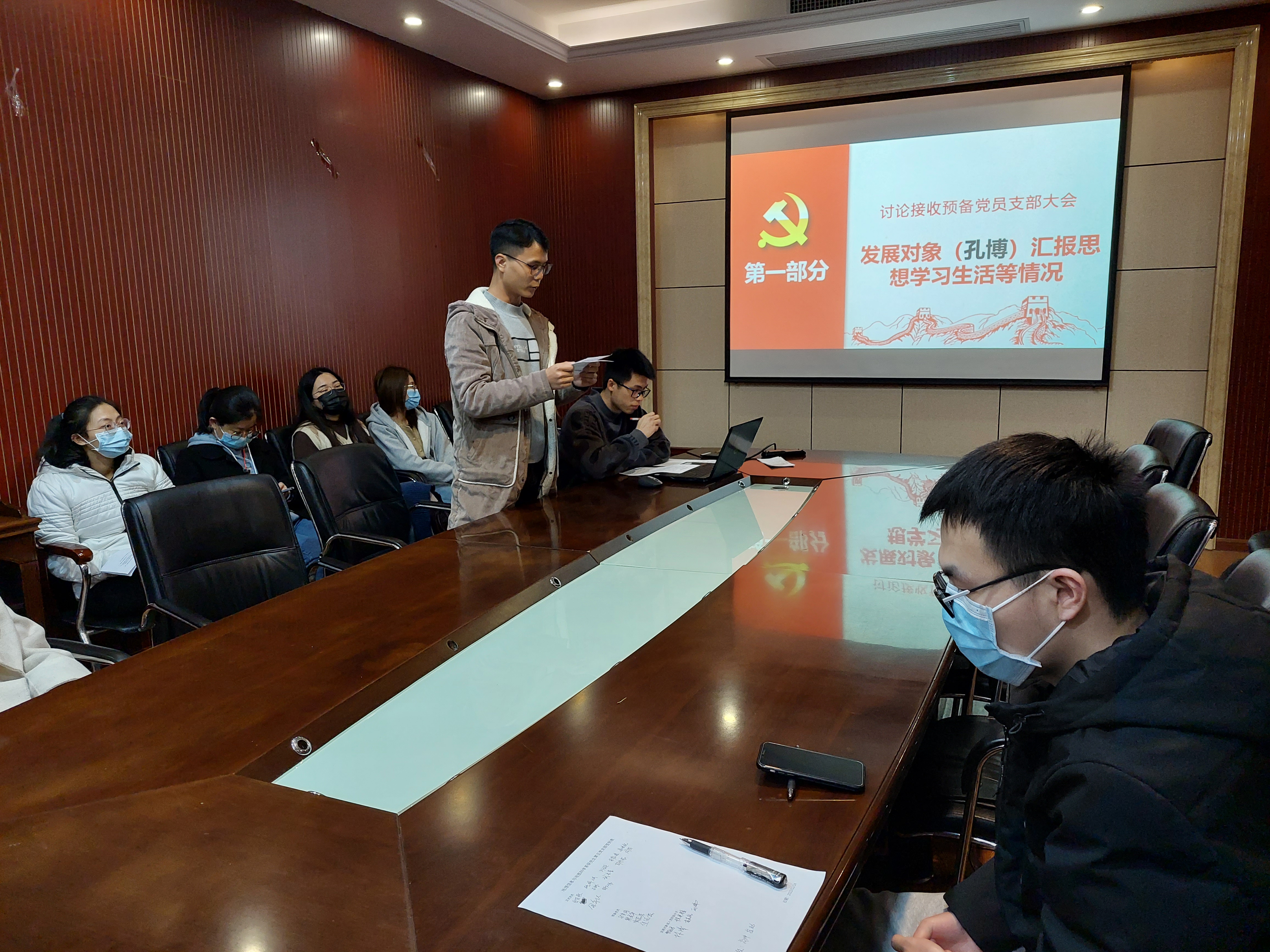 其次,支委会报告了对于林倩同志与孔博同志的审查情况,对两位同志的教育经历,家庭背景等进行了介绍,并对其在工作学习等方面的表现与不足发表了意见。