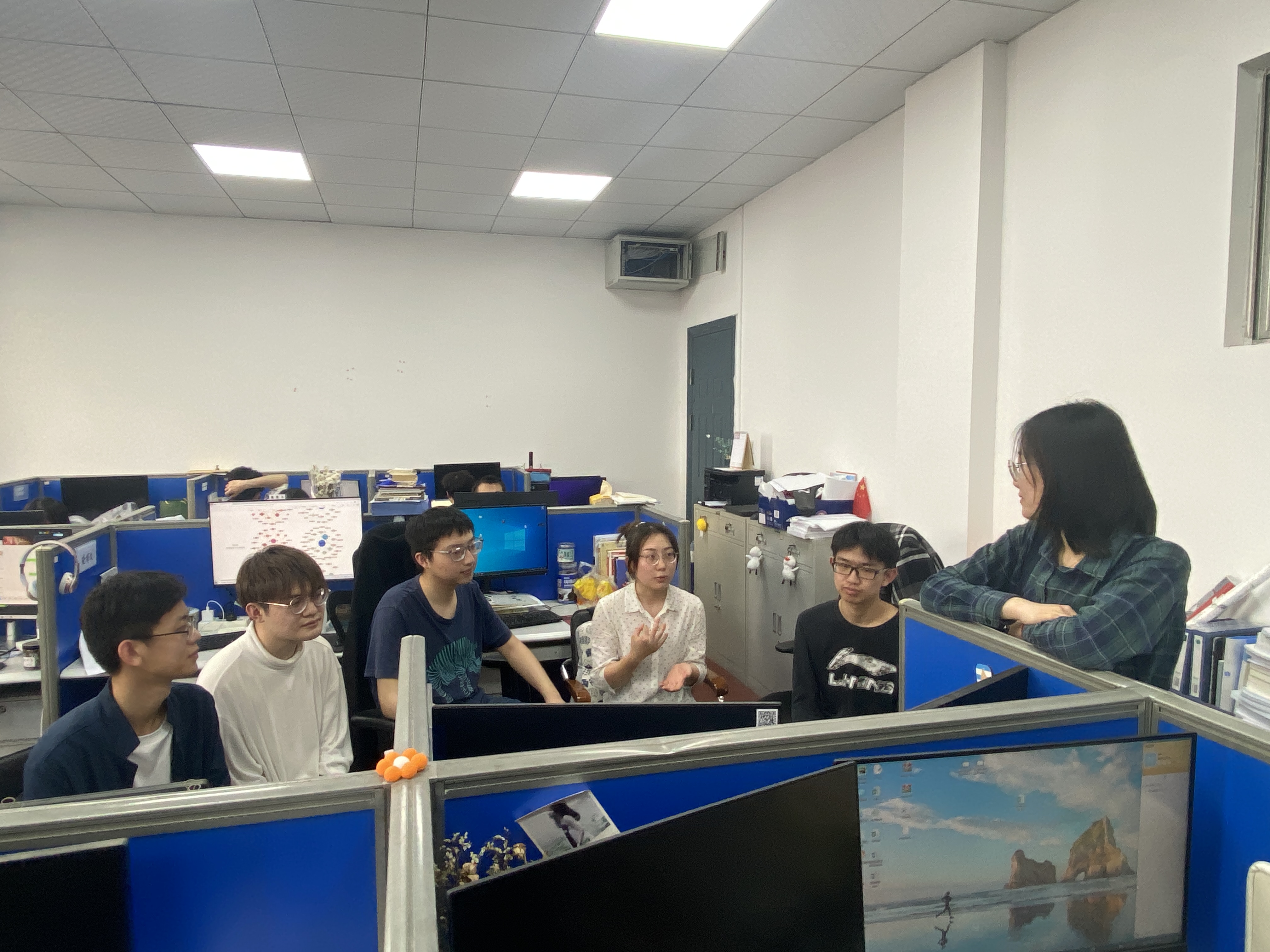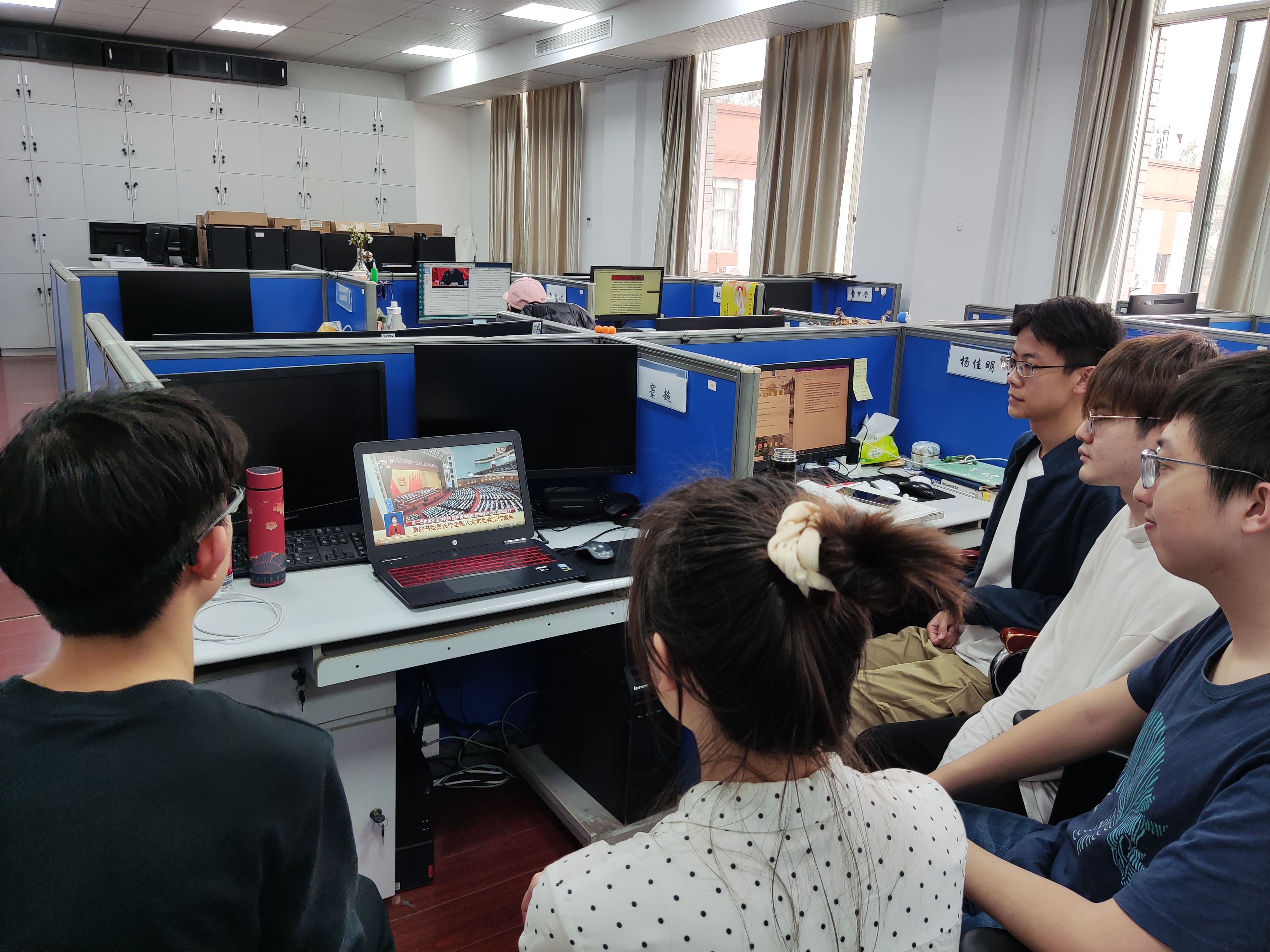 大家围坐在实验室,热议总书记的两会声音及政府工作报告,讨论两会“关键词”:“稳字当头、稳中求进”、“法治政府建设”、“粮食安全”、“常态化疫情防控”、“乡村全面振兴”、“碳达峰、碳中和”、“高质量发展”、“就业优先政策”等。支部成员对关注的热点话题各抒己见,增添了自身拼搏奋斗新征程、建功立业新时代的勇气和自信。