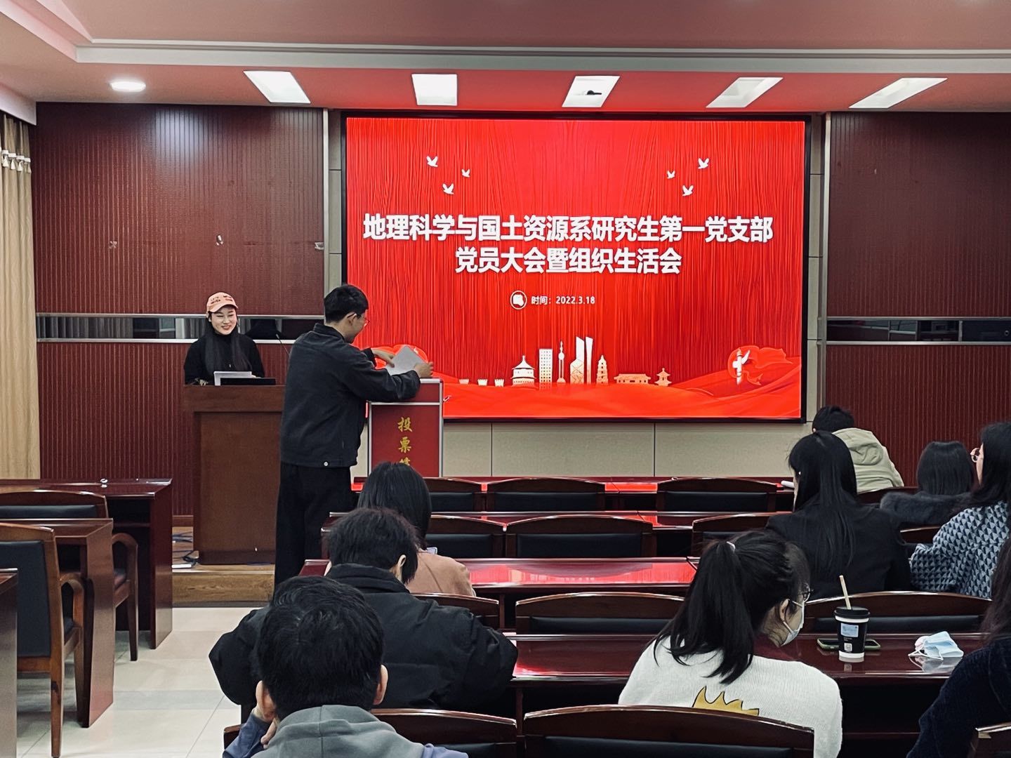 2022年3月18日下午14:30,地理科学与国土资源系研究生第一党支部党员大会暨组织生活会在色情直播app