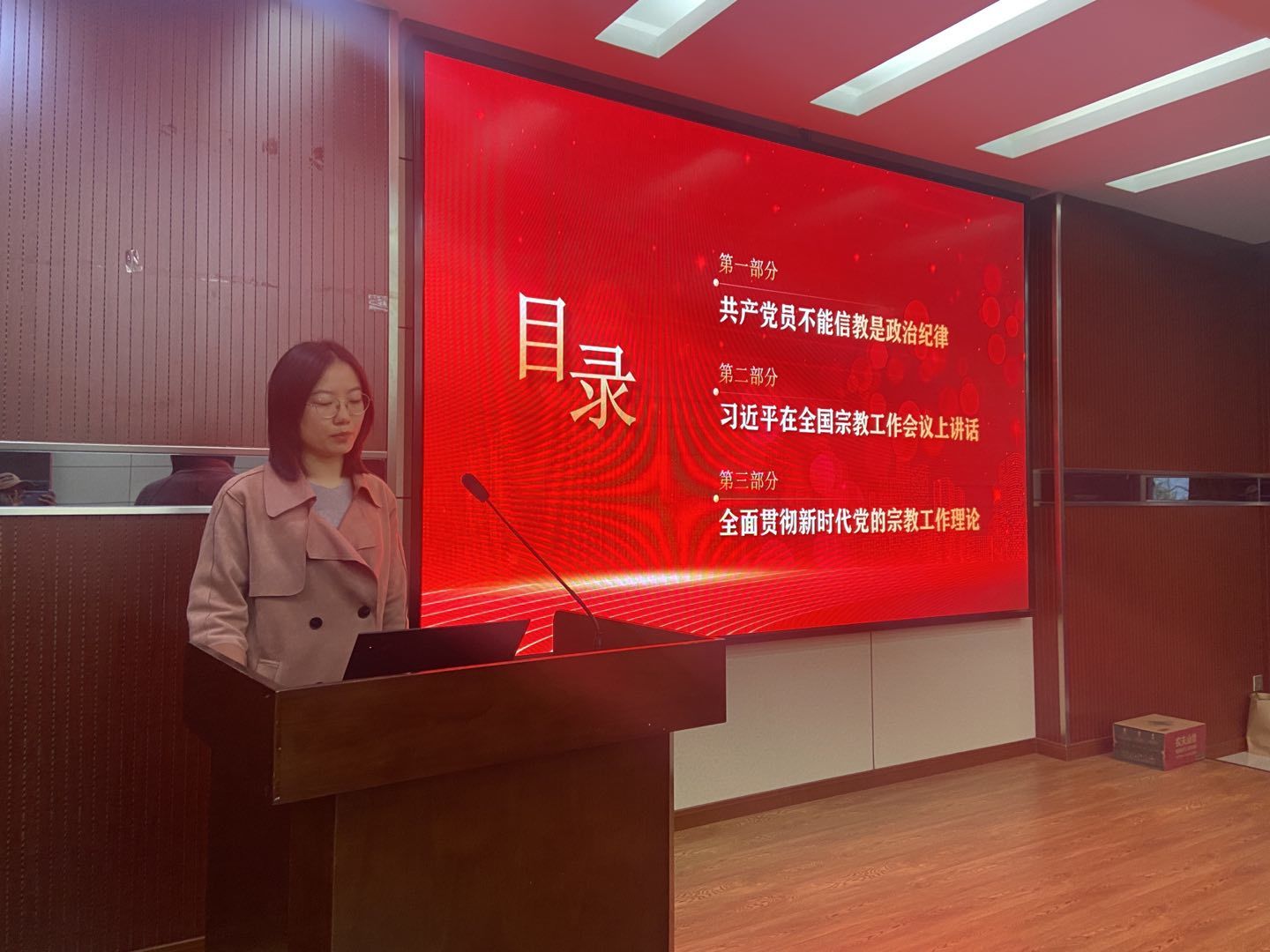 会议第二项,由支部副书记盛舒童带领大家进行“党员不能信教”主题学习教育,盛舒童同志首先从党章条例和法律法规明确共产党员不能信教是政治纪律,任何组织和个人不得在学校进行宗教活动,明确违反纪律的严重性。然后,组织大家观看了习近平总书记在全国宗教工作会议上的讲话,从“九个必须”强调了坚持我国宗教中国化方向,积极引导宗教与社会主义社会相适应。最后,提倡大家全面贯彻新时代党的宗教工作理论,深刻理解其核心要义、精神实质、丰富内涵和实践要求。各位参会的积极分子与预备党员也发言表明了态度,坚定马克思主义信仰。