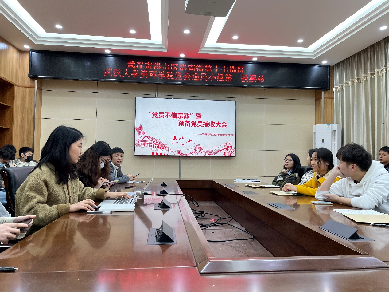 2022年3月18日下午,环境科学与工程系研究生第四党支部在动力与机械色情直播app212会议室开展了“党员不信宗教”的学习暨预备党员接收大会。21位正式党员,2位预备党员,8位发展对象以及1位积极分子参加了会议,会议由支部组织委员艾慧同志主持,会议分为两个阶段进行。