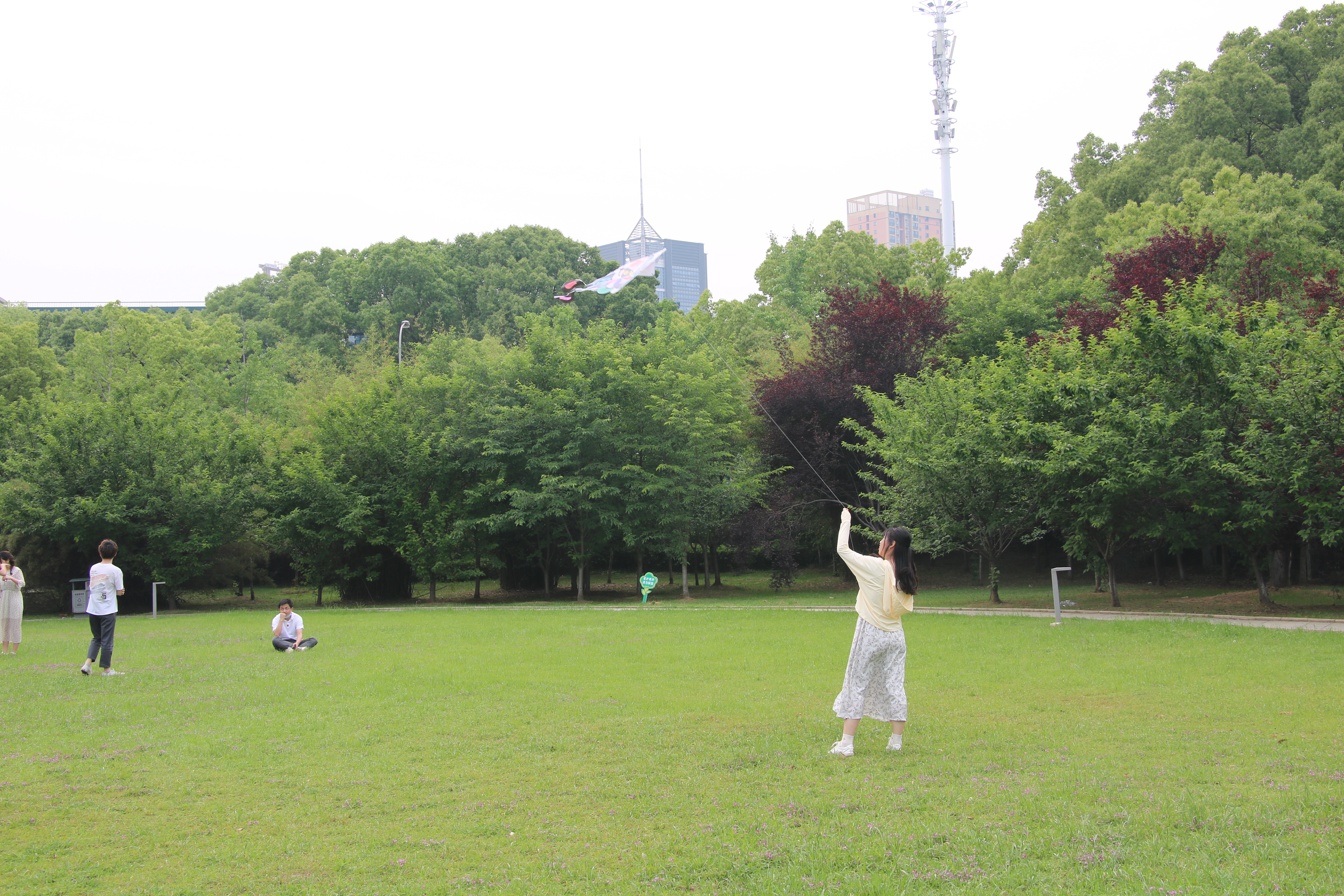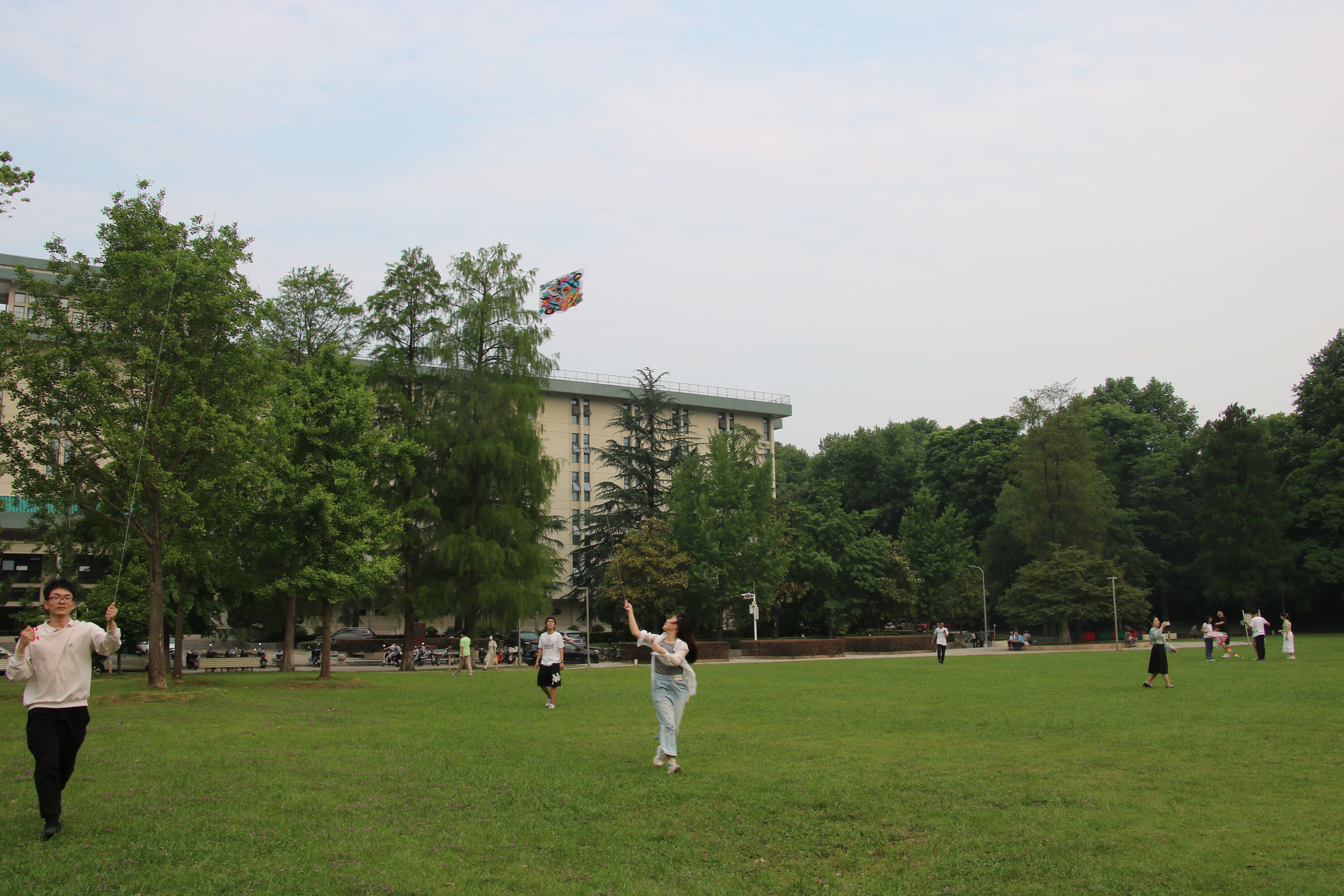 活动最后,大家带着自己的风筝,在教五楼前放飞,同学们欢声笑语,肆意奔跑,小小的风筝承载着同学们美好的梦想,翱翔于蓝天之上,同学们抛却烦恼,青春洋溢,活力无限,这个春天虽不能远行,但风筝亦可以带着我们去看更广阔的世界。