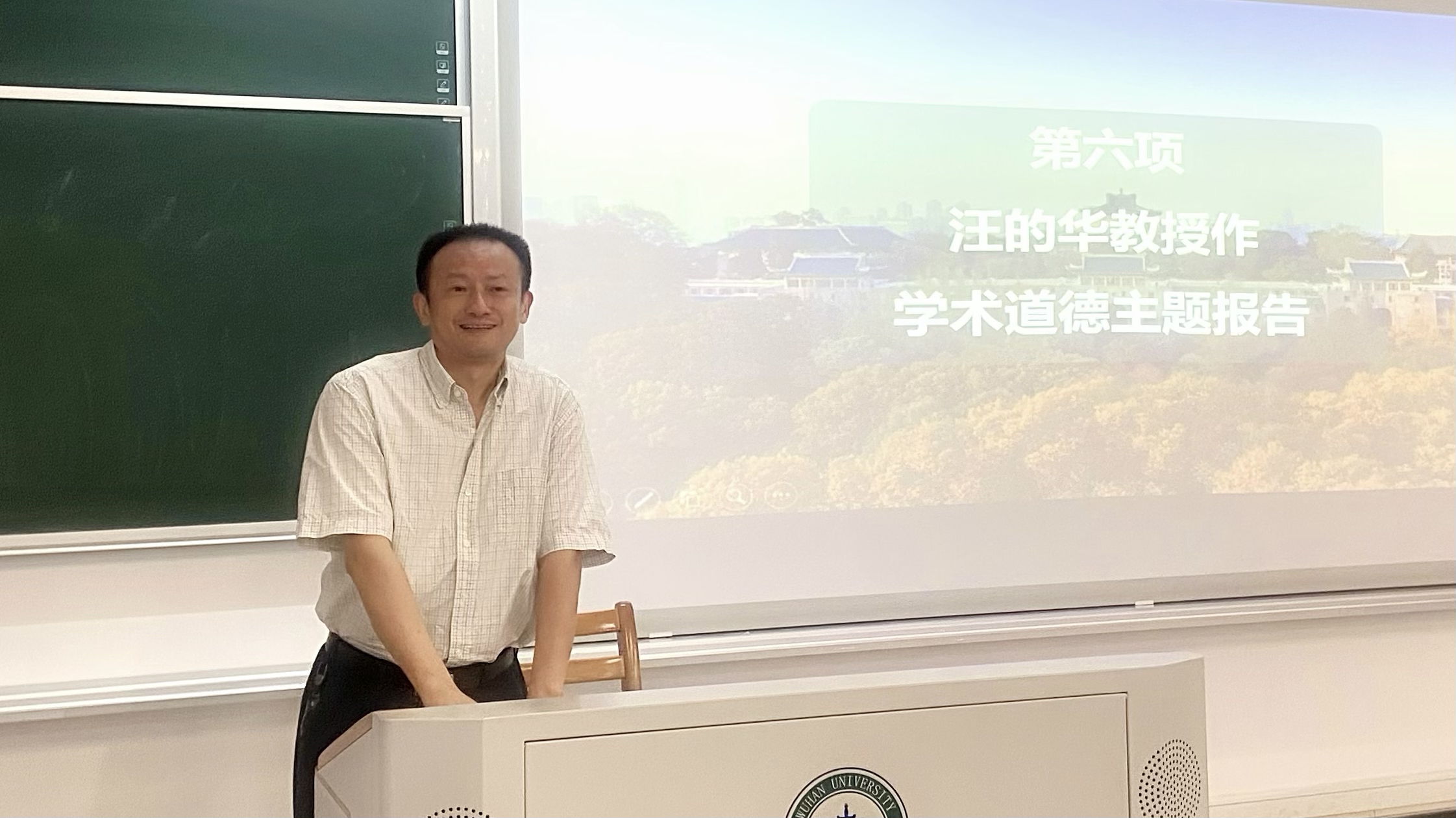 首先,汪的华教授作学术道德主题报告。汪教授从什么是学术诚信、遵守学术诚信的重要性、为什么存在学术不端的现象和如何坚持学术道德四个方面,引用数个真实案例,生动又深刻地教育同学们要求真务实,做一个有志气、有骨气,守住学术诚信边界线的研究者。最后,他引用窦校长在开学典礼上的发言,祝愿大家“求得真学问,学得真本领”。