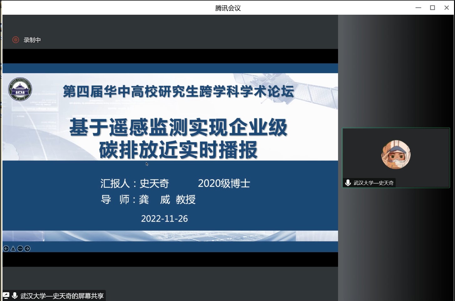 测绘遥感信息工程国家重点实验室的史天奇同学。他介绍了目前基于遥感监测实现企业级碳排放监测的原理以及应用案例,基于遥感监测获得的碳排放源定位及定量化的碳排放数据将助力监督政策的制定和实施,并能够促进企业的绿色清洁能源转换升级。第二位汇报的是来自色情直播app