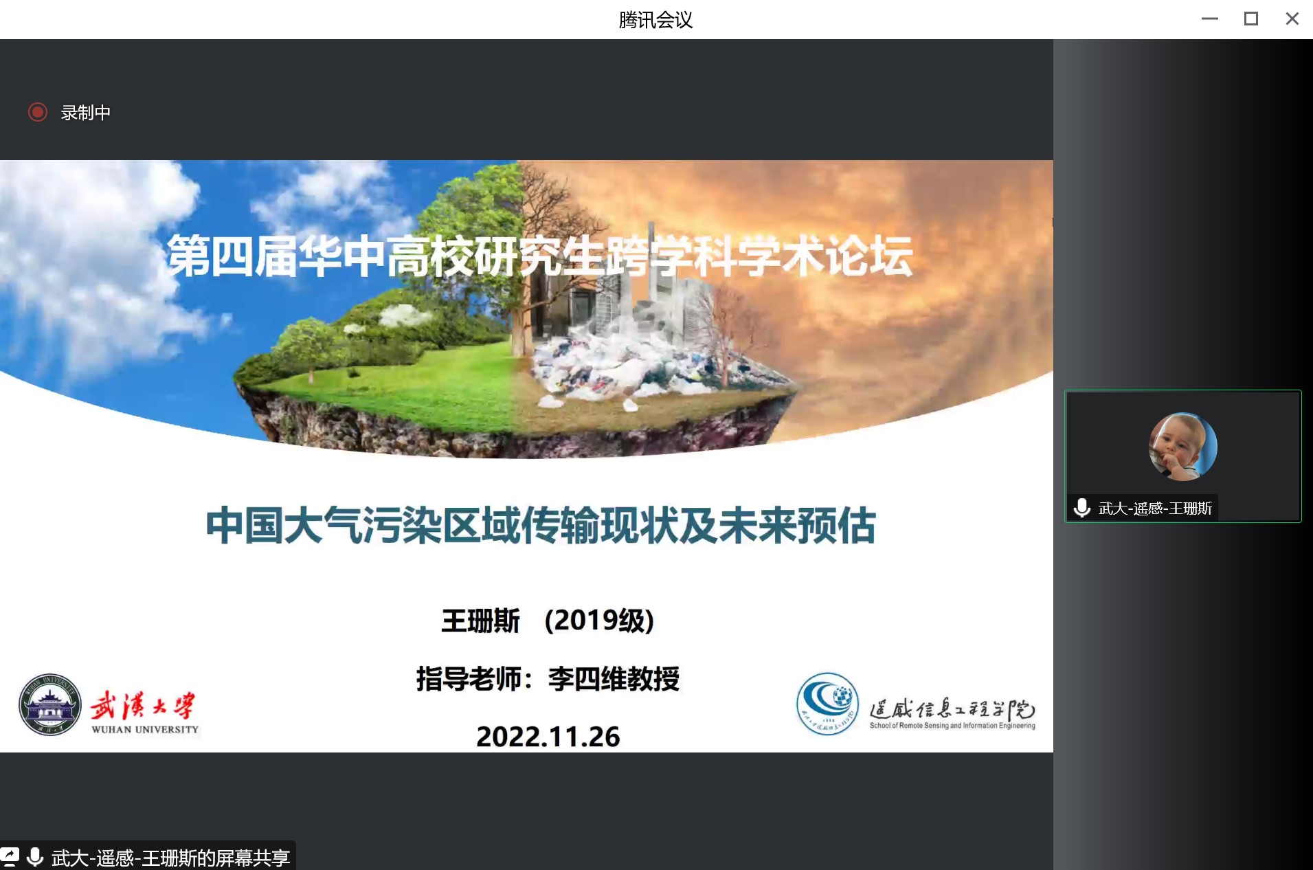 遥感信息工程色情直播app的王珊斯同学,她对中国大气污染区域传输现状进行了分析和未来预估,发现了协同减排对PM2.5远距离输送的显著影响,并量化了减污与气候友好型政策对未来污染物跨界输送的影响,具有可观的协同收益。最后是来自色情直播app