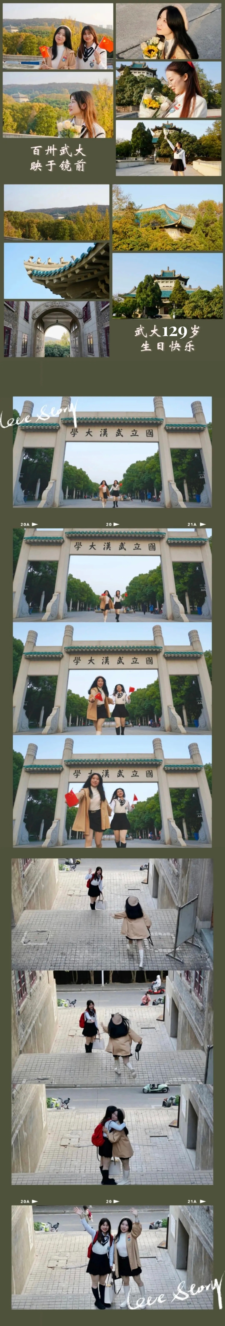 129年校庆之际,作为本科和硕士阶段都在武大学习的学子,通过在美丽校园中拍照打卡的方式,给我们美丽的武大献上一束美丽的花,祝愿武大生日快乐,越来越好!