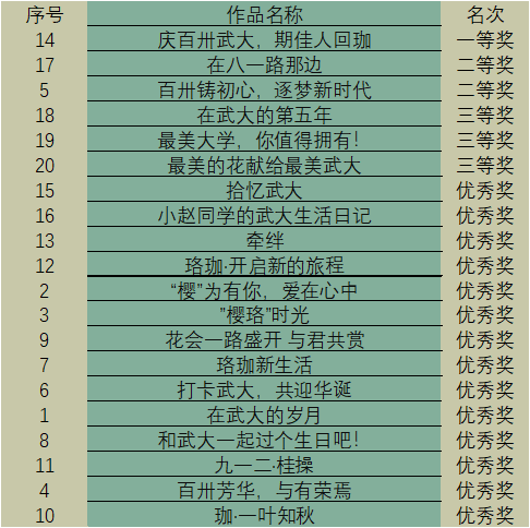 举办的“百卅武大,映于镜前”校园主题摄影大赛圆满落幕,比赛结果新鲜出炉,现公示如下: