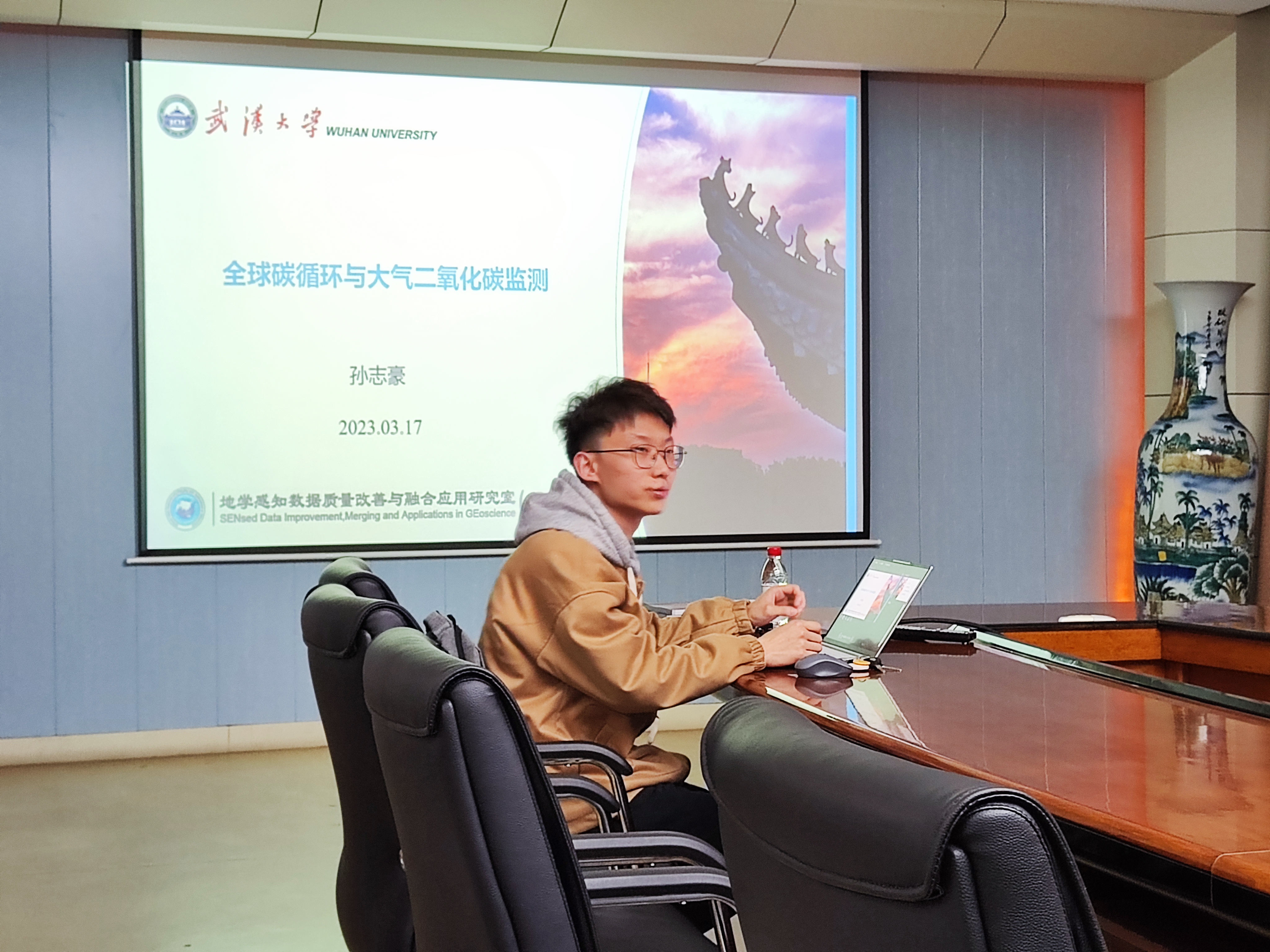 接下来,孙志豪同学结合自己的科研方向为大家带来关于全球碳循环的介绍。碳的生物化学循环控制了碳在地表和大气、生物圈、海洋之间的迁移在大气中,二氧化碳是含碳的主要气体,也是碳参与物质循环的主要形式精确测量大气中的二氧化碳则是定量研究碳循环的基础。在此背景下,孙志豪同学从全球碳循环相关概念、全球碳循环机理、二氧化碳监测手段、全球碳通量变化展开探讨,从数据、机理视角理解中国“双碳”政策。