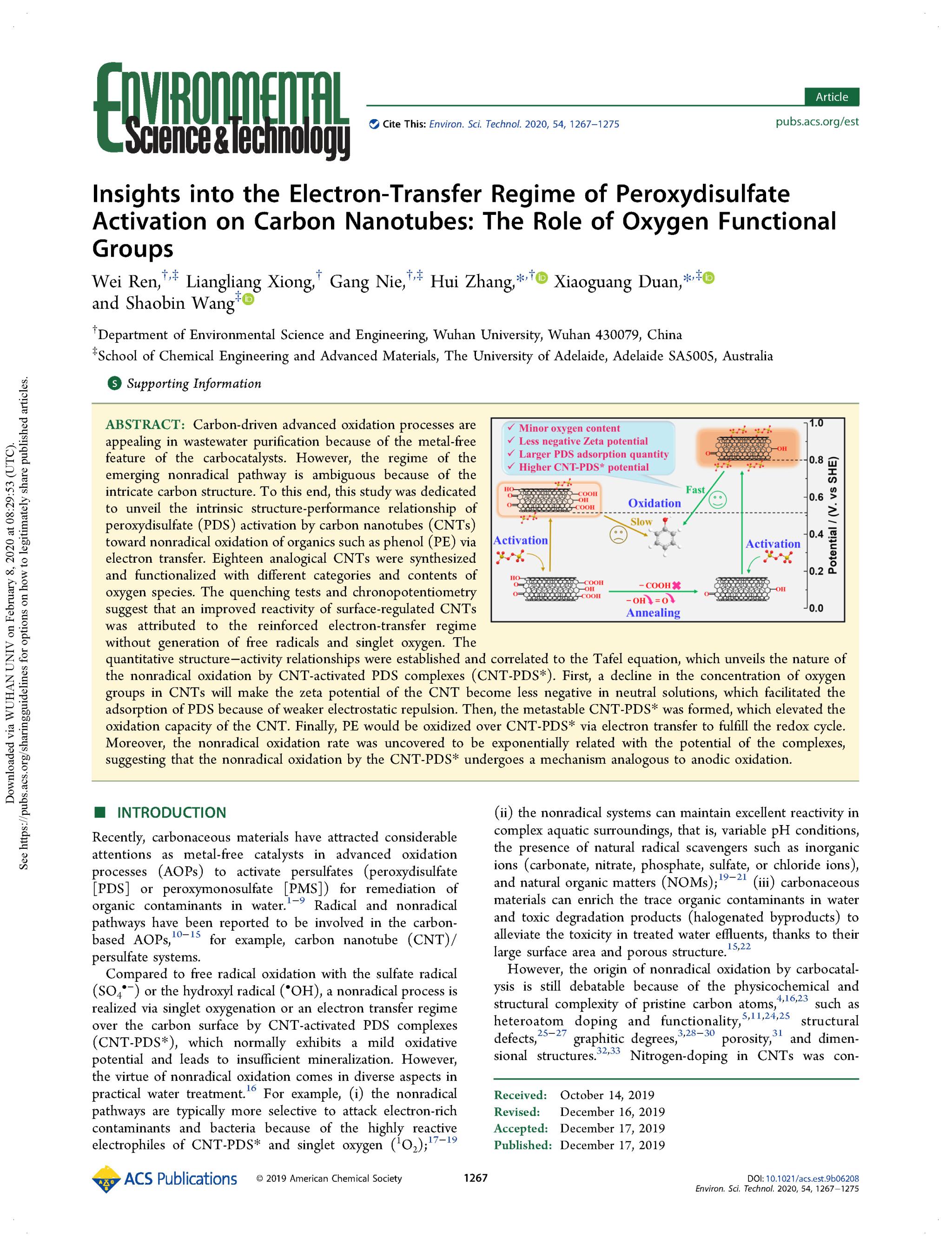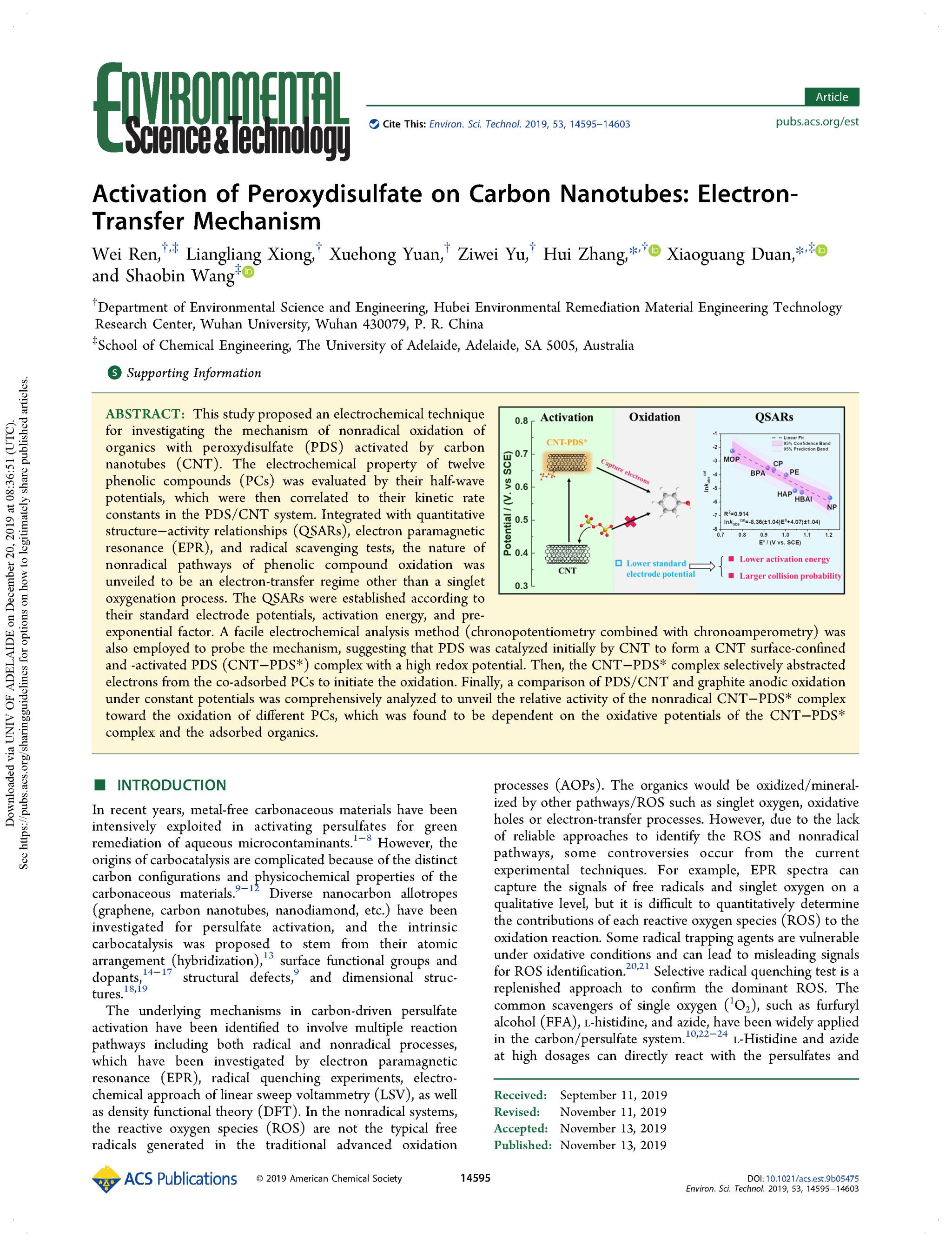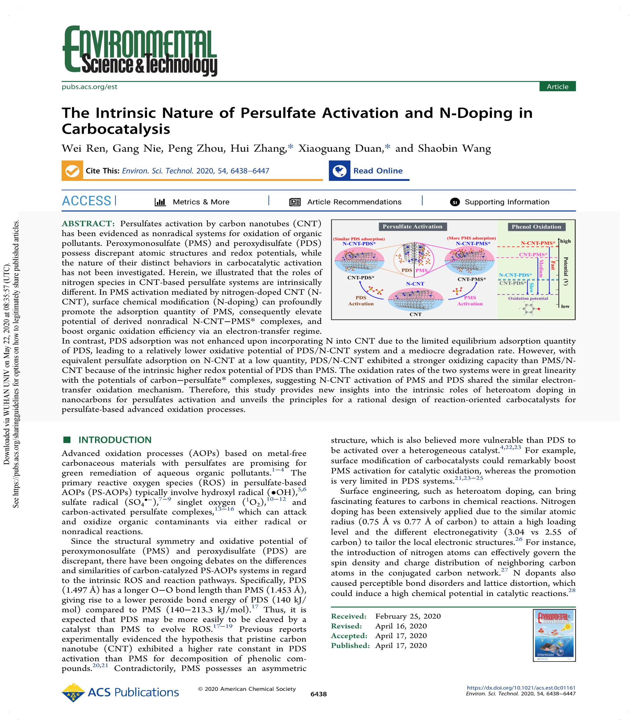 资助,赴美国波士顿参加美国化学会256th年会。主要研究方向包括高级氧化技术、纳米碳催化和环境电化学。已在Environ. Sci. Technol.、Water Res.、Angew. Chem.等SCI二区及以上国际期刊发表论文17篇,论文影响因子总和超过120,其中SCI一区论文10篇、自然指数期刊5篇;申请发明专利共5项,已授权2项。曾获色情直播app