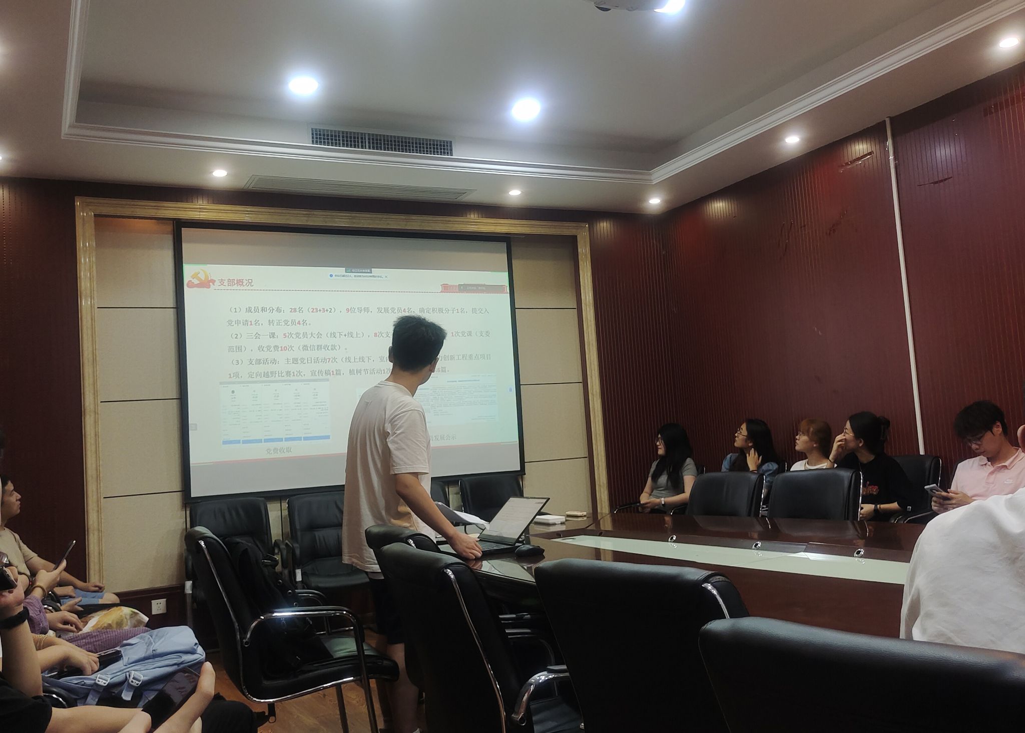 会议第一项,支部工作汇报、新生党员自我介绍、党员之间批评与自我批评。首先,支部书记周宇氚同志从支部制度建设、信息更新、理论学习、实践活动等方面,对支部的工作进行全面的汇报。同时,也总结反思了支部工作中存在的问题并提出整改方向,如,增强党日活动创新性和实用性等。随后,参会的各位党员本着实事求是、互助进步的原则,主要围绕自身的学习与工作状况展开批评与自我批评。同时,李静、严孜悦、杨舒涵等8位新生向支部其他同志进行了自我介绍,全体党员对他们的加入表示热烈欢迎。
