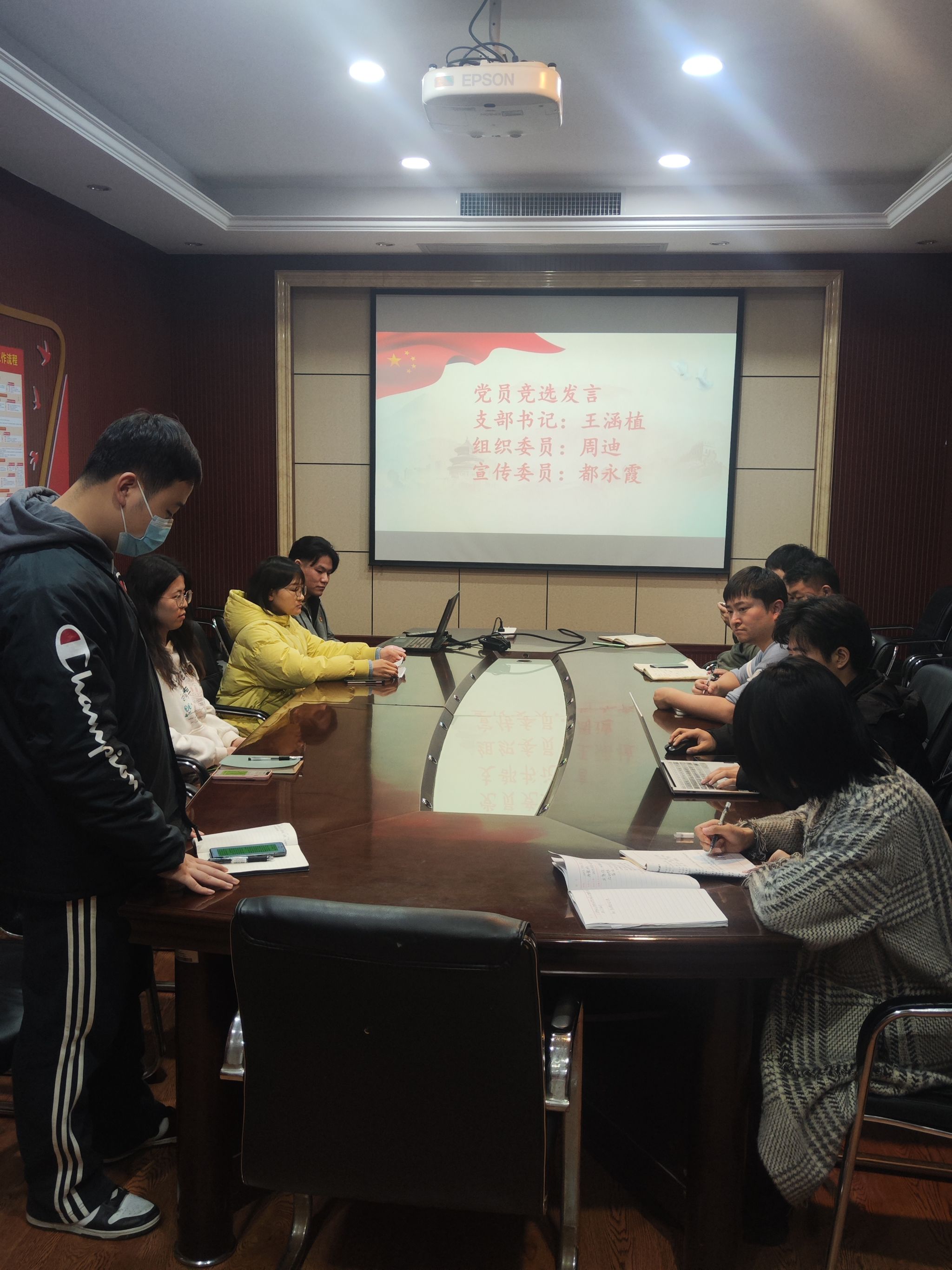 会议第一项,党支部情况介绍。由支部书记王子任同志代表支委会主持换届选举,王子任同志介绍了党支部情况,包括成立时间、党员组成、支委组成与分工,并对党支部支委调整作出了说明。