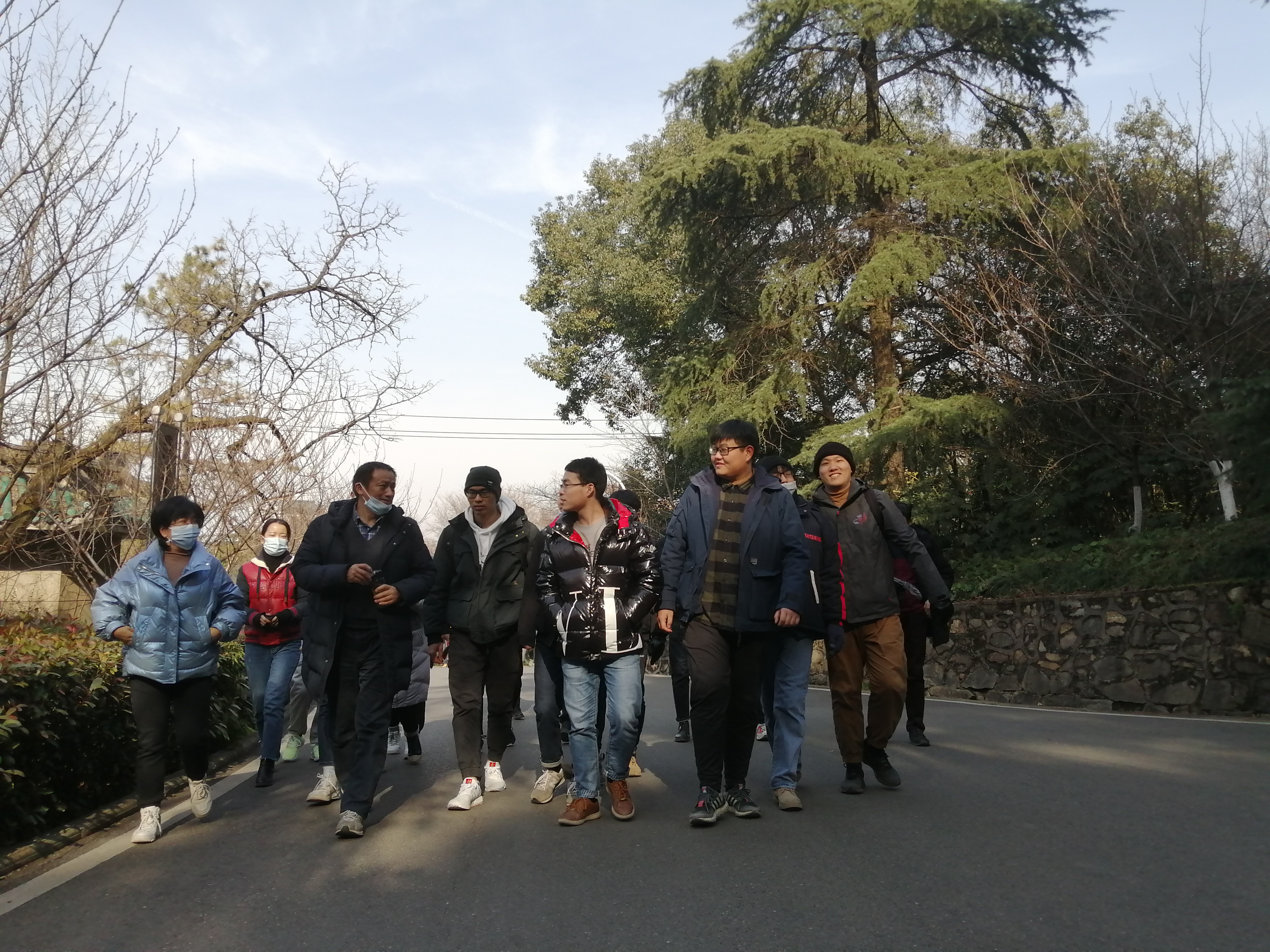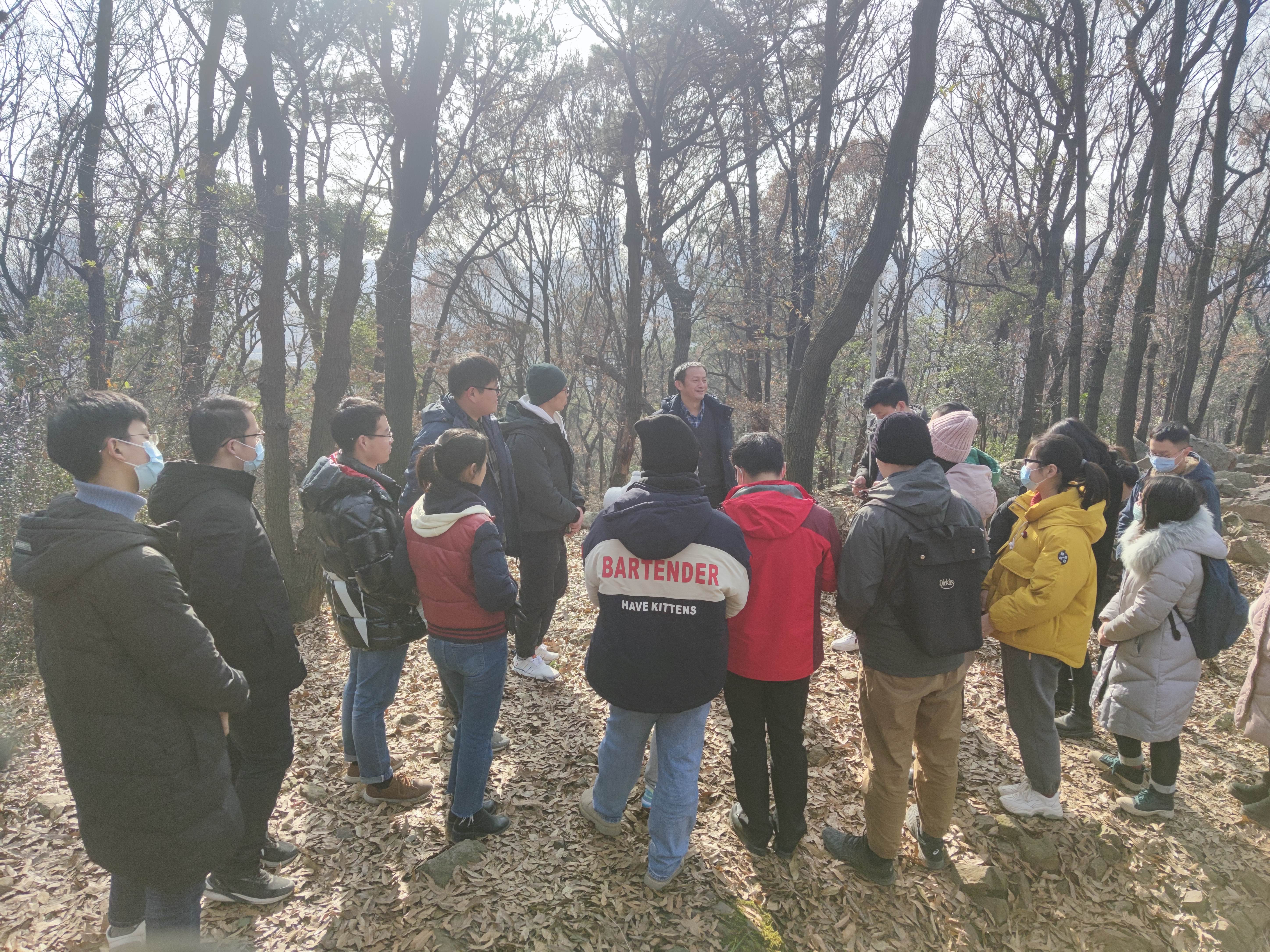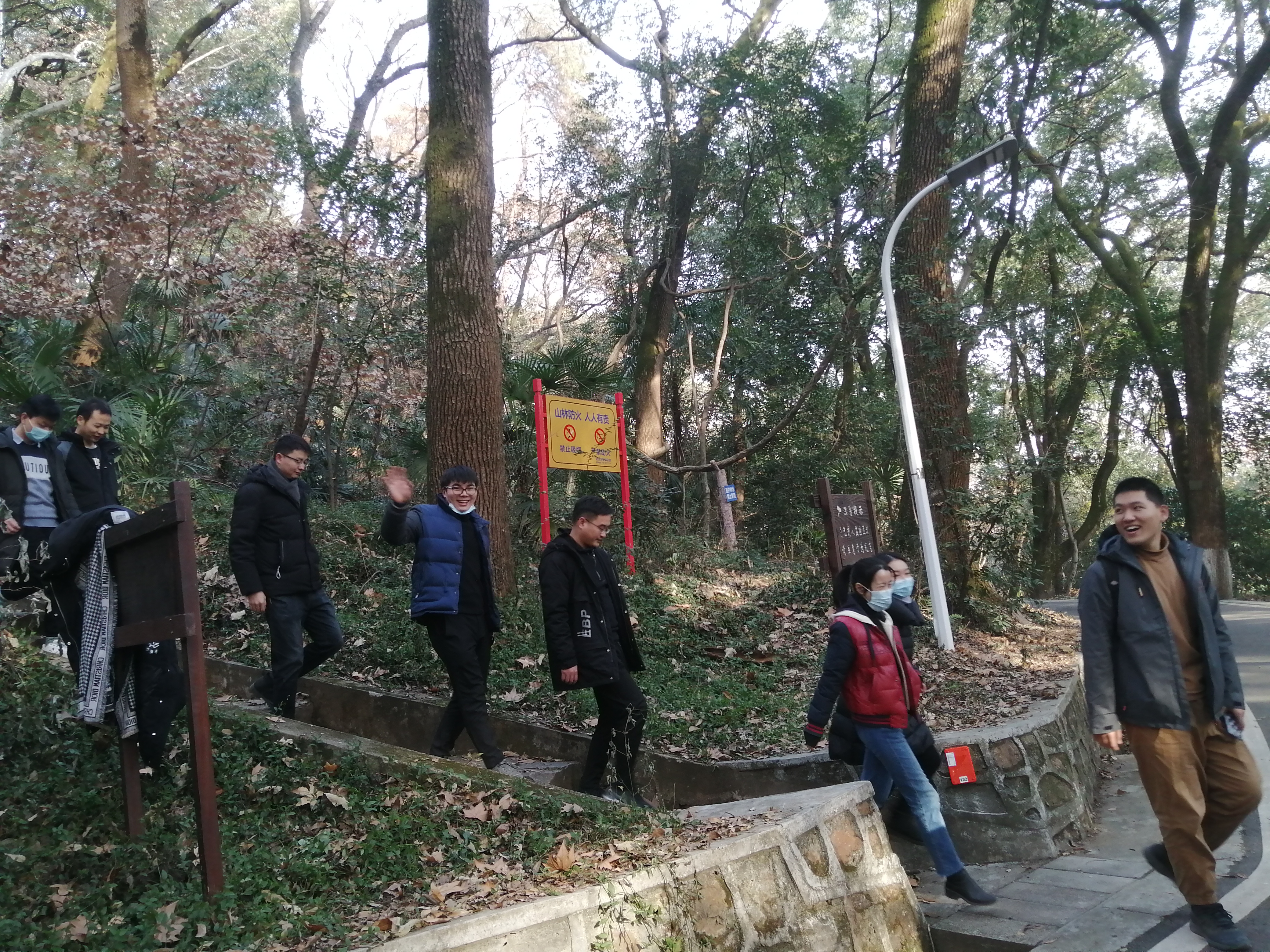 汪老师带领所有参会成员从珞珈山庄出发爬珞珈山