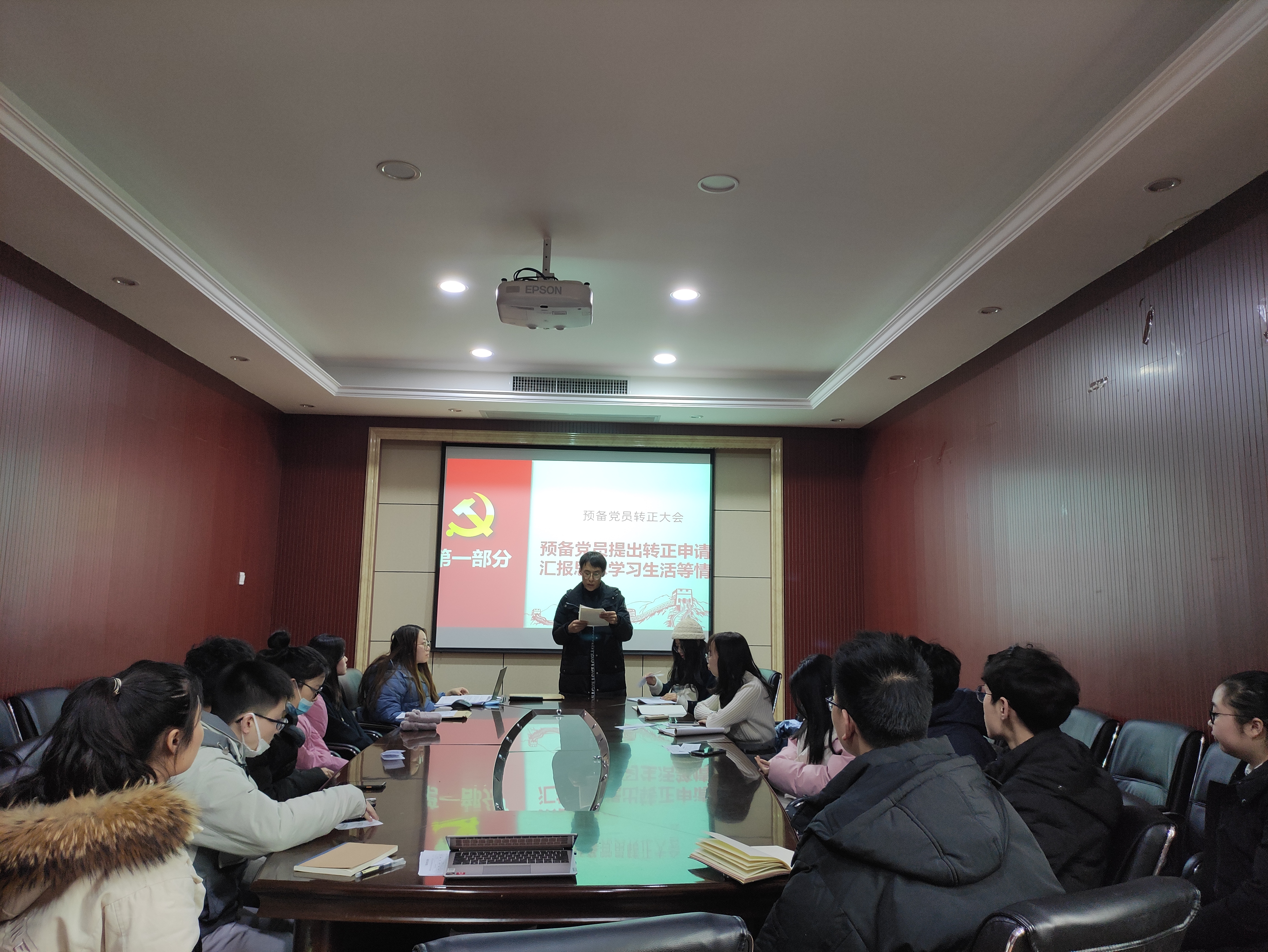 会议议程严格按照各项程序要求。会议开始,辛成同志和顾滢同志宣读《转正申请书》,汇报了自己在预备期间的表现,总结了在思想、学习、生活、工作上的进步,指出自身仍需改进的地方并提出今后的努力方向,郑重地向党组织提出转正申请。