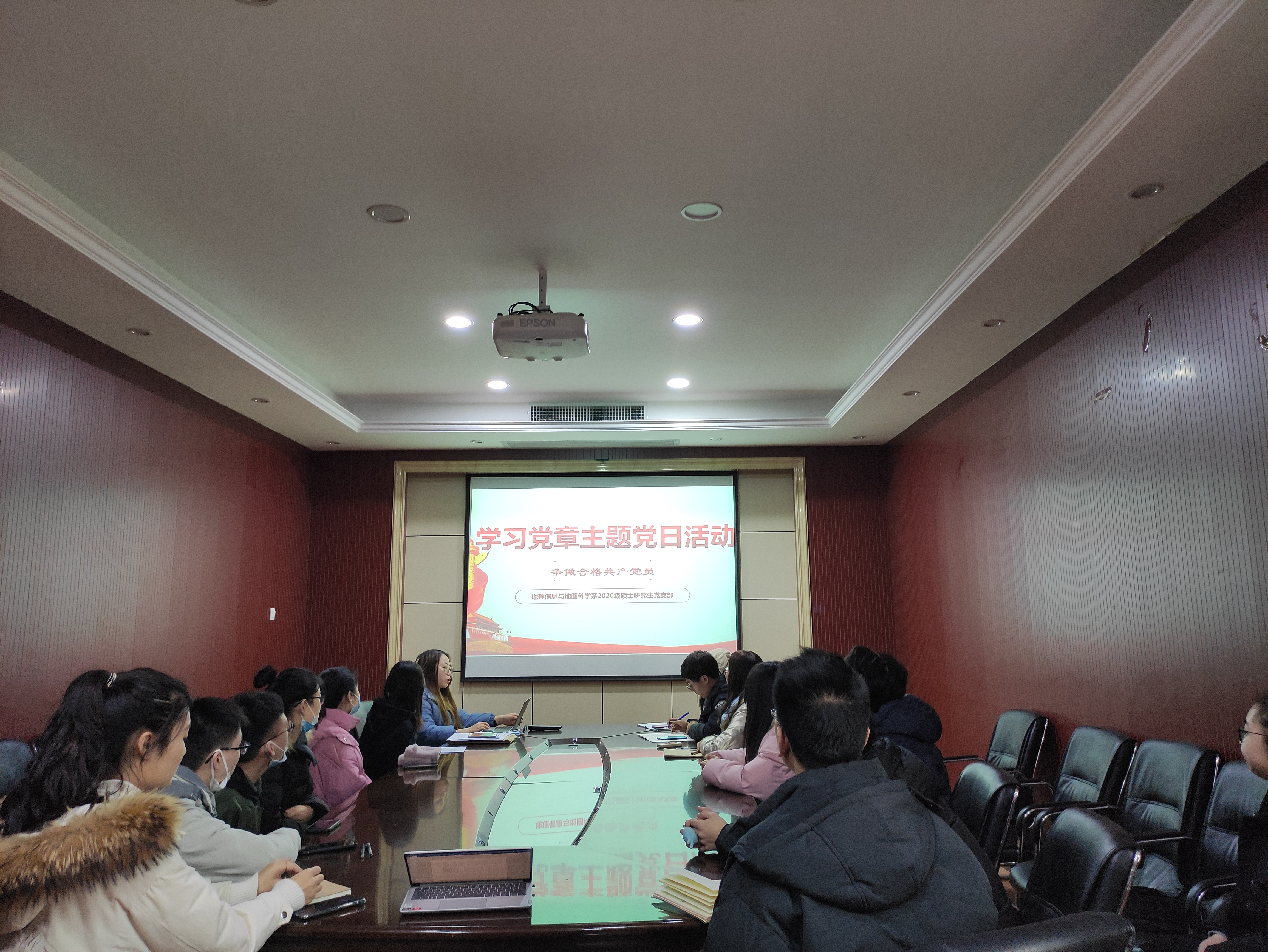 2020年12月18日周五下午四点,地理信息与地图科学系2020级硕士研究生党支部预备党员转正大会暨学习党章主题党日活动于院办504召开,会议讨论并通过了辛成同志和顾滢同志按期转为正式党员的申请。本次会议由支部书记包雨睿同志主持,本次会议应到正式党员12人,预备党员2人;实到正式党员9人,预备党员2人,请假3人。此外,入党积极分子和发展对象也参与了此次会议。