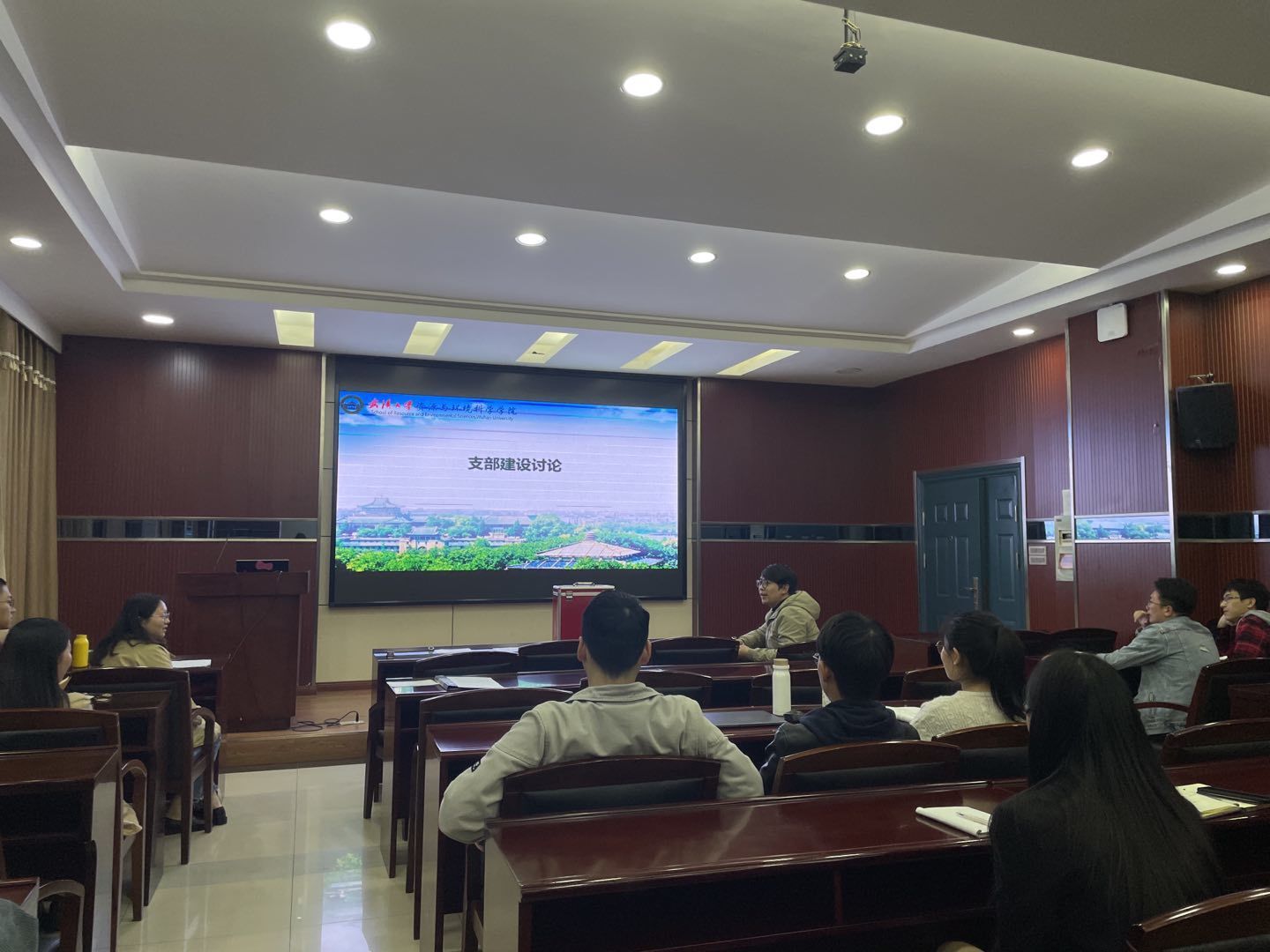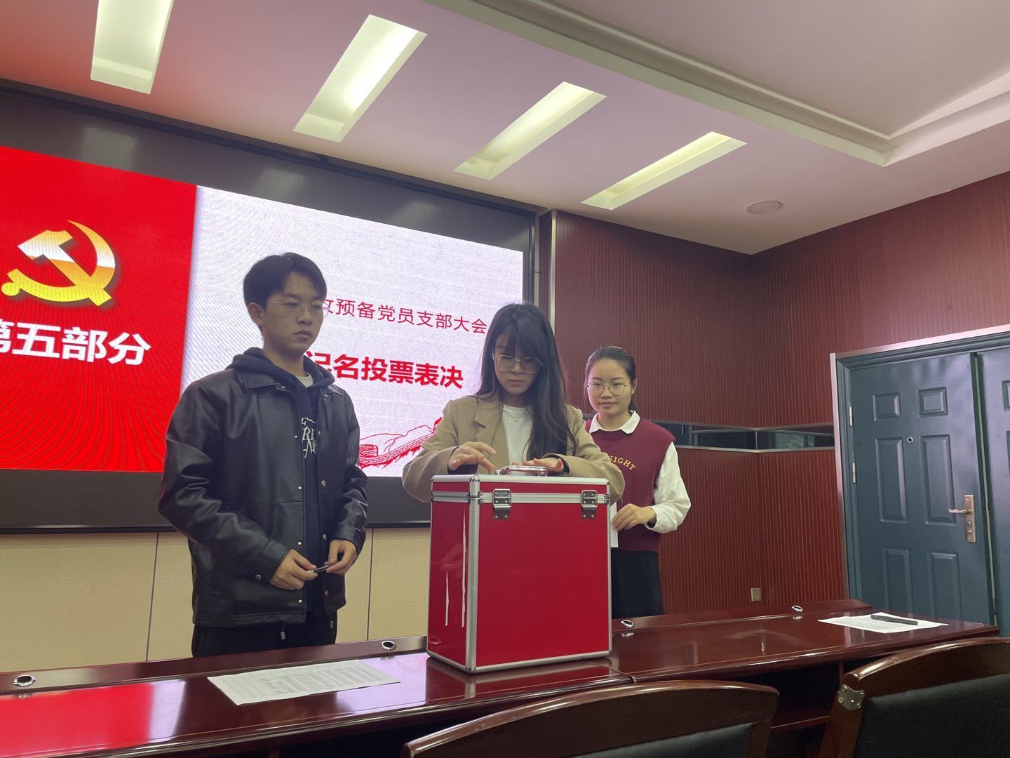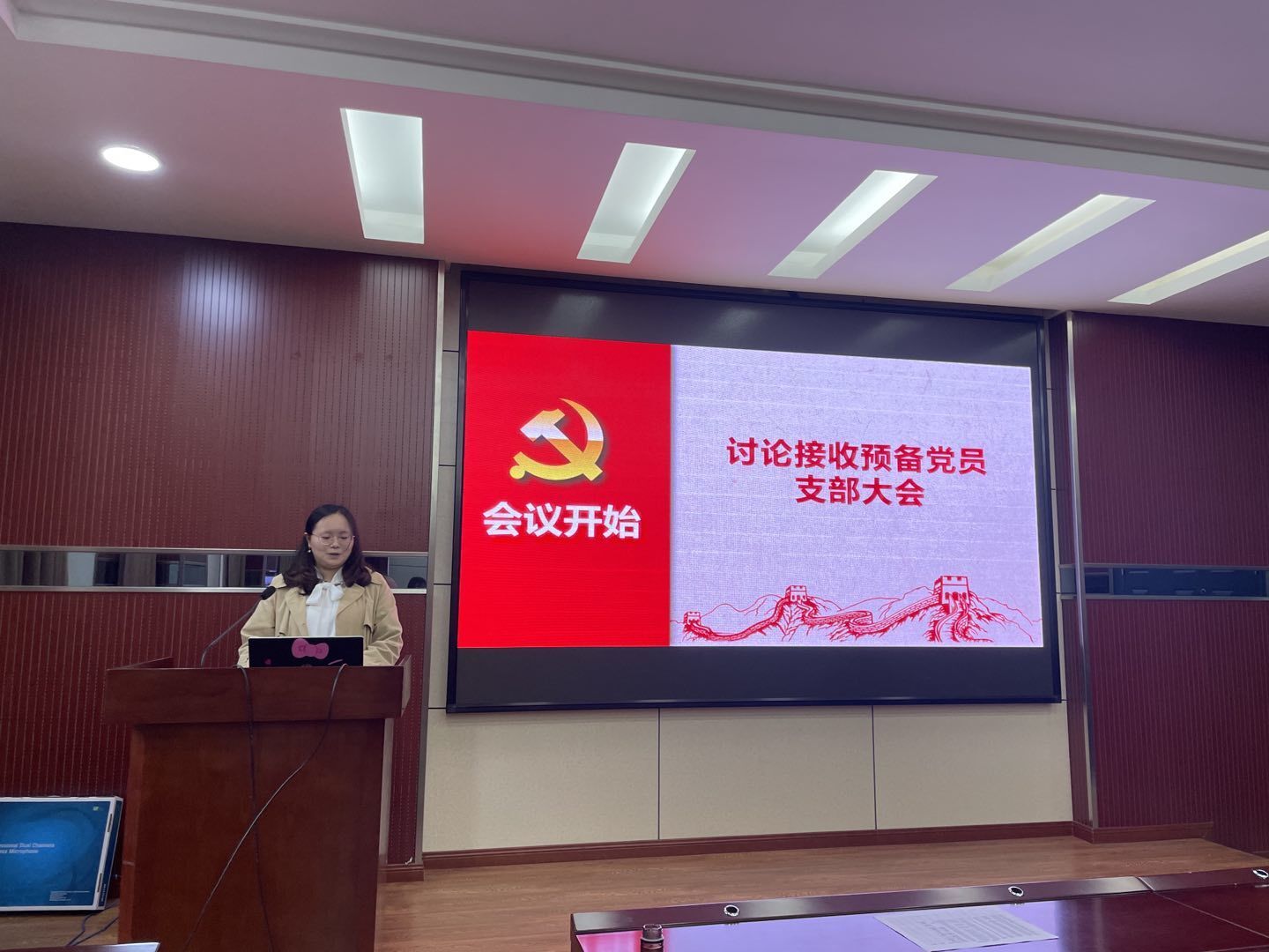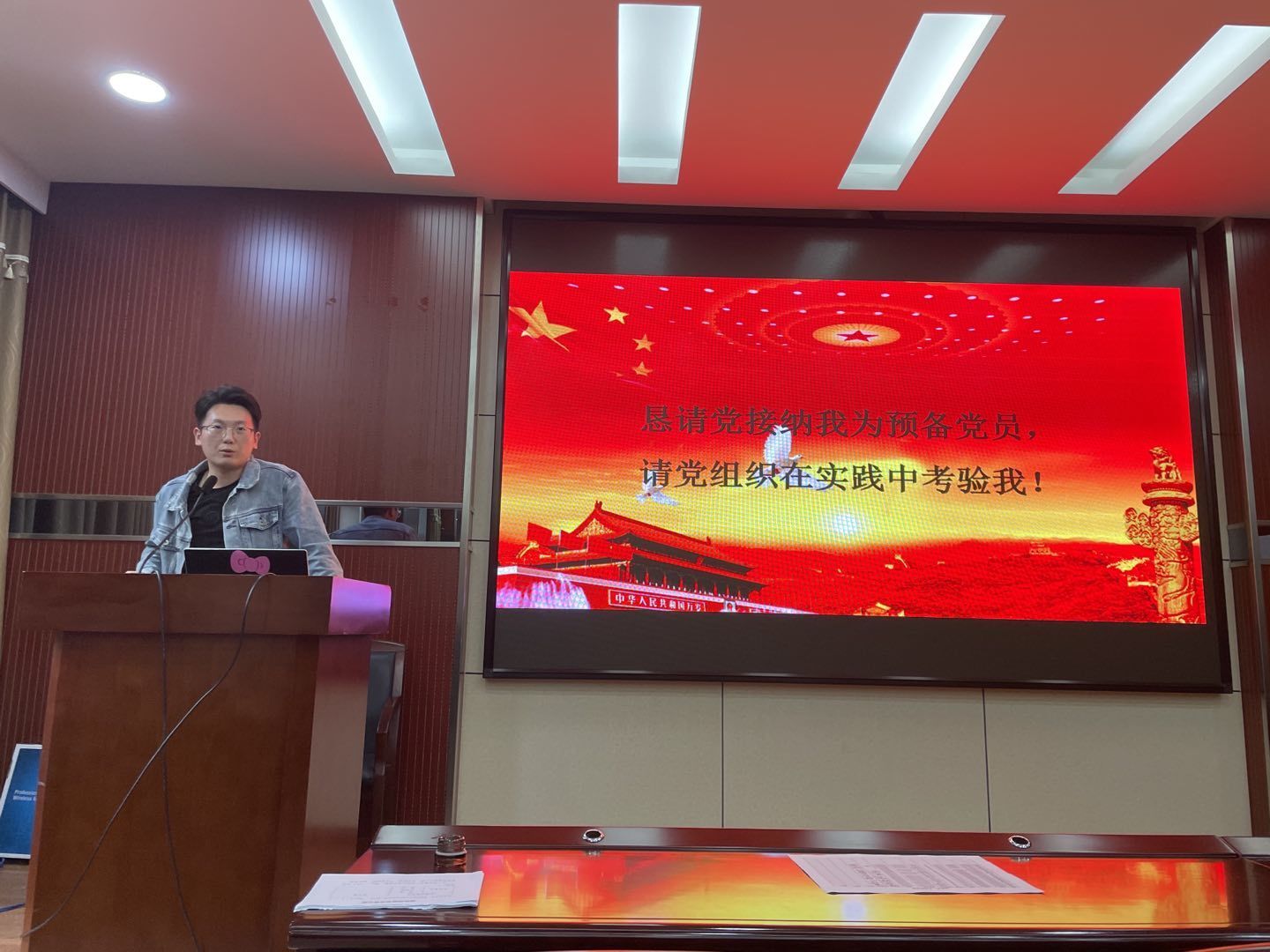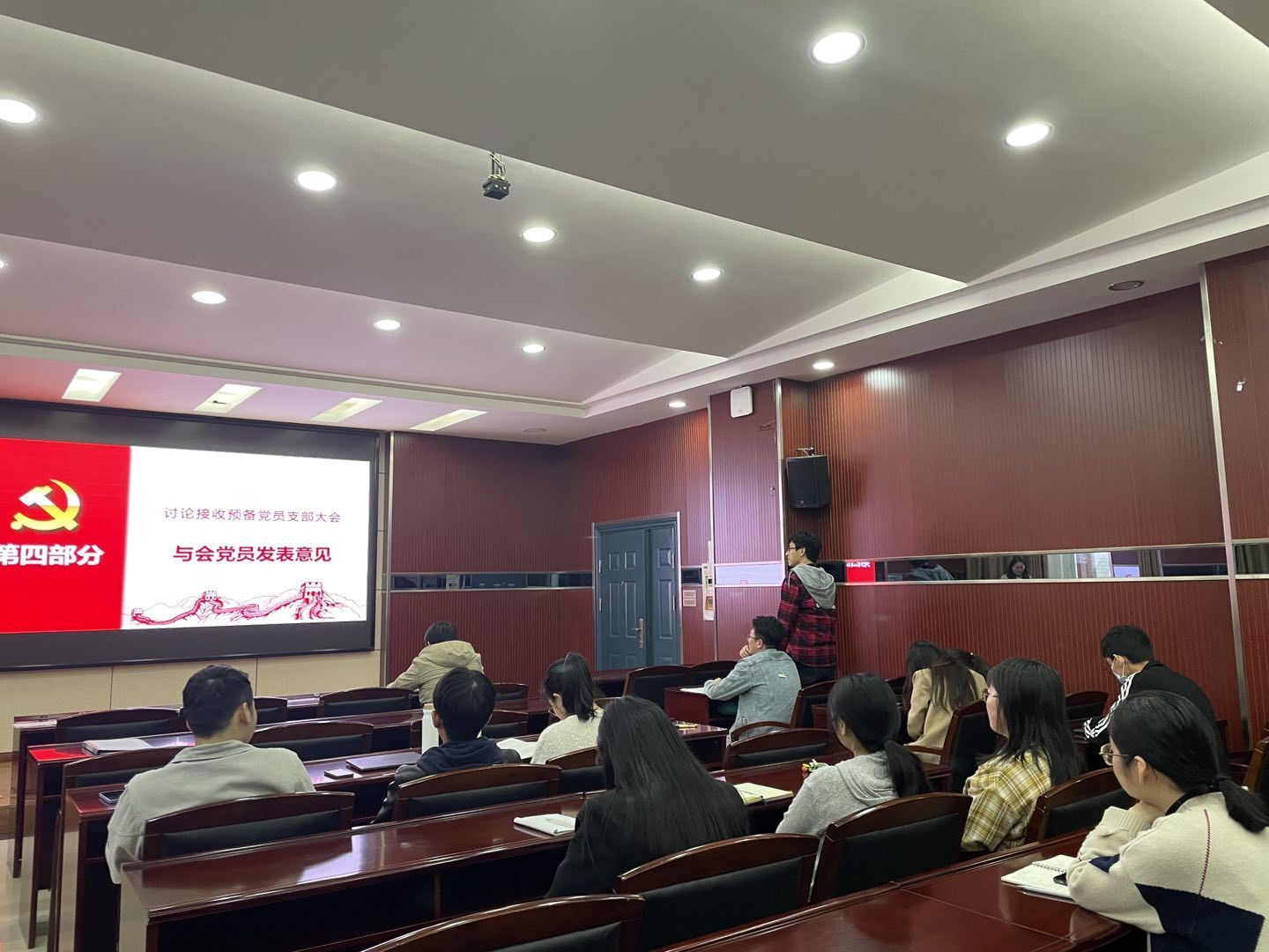 220会议室开展讨论接收预备党员大会,并邀请辅导员李韩老师参会,会议内容主题为讨论并表决接收杨文峰同志转为预备党员申请。组织委员刘馨同志负责此次会议流程。