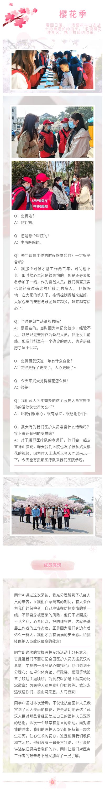 支部成员在医护人员赏樱专场活动期间,在武大校园内随机采访了几位亲身经历了武汉抗疫的医护人员。
