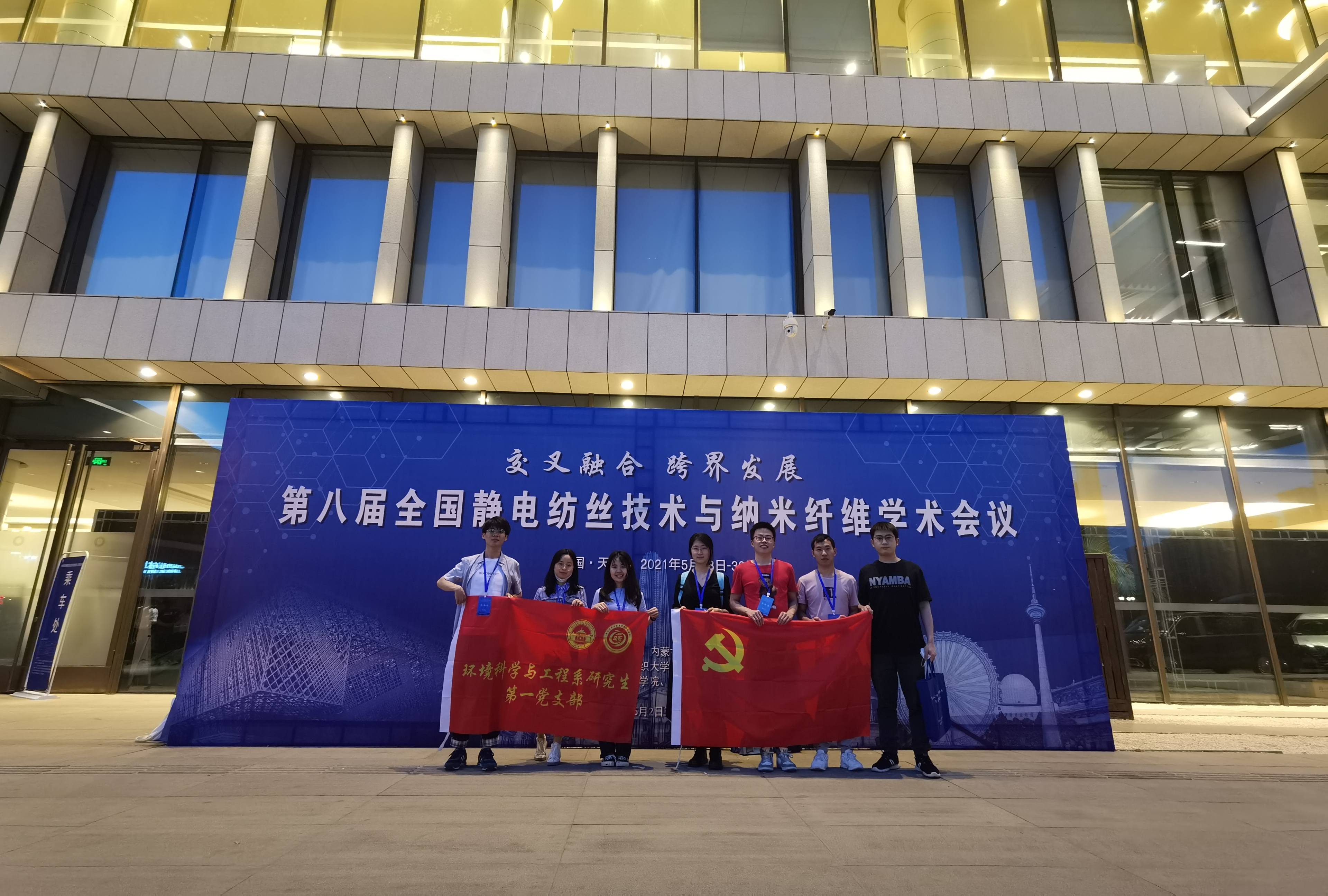 2021年5月28-30日,环境科学与工程系研究生第一党支部苏会钰、曹诗翊、黄京、刘方恬、董向阳、李昊等6名同学在邓红兵导师的带领下来到天津市,参加第八届全国静电纺丝技术与纳米纤维学术会议。