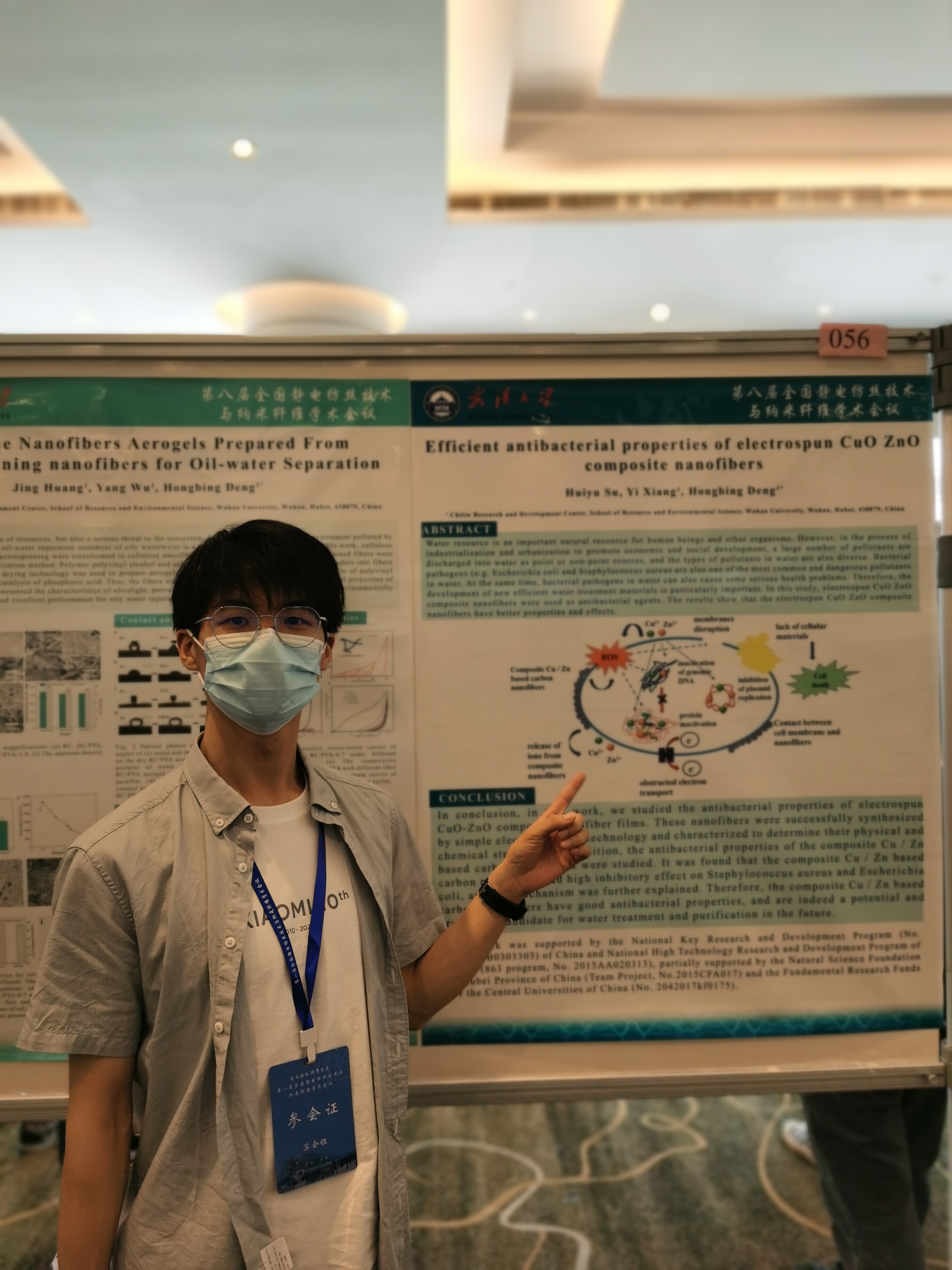 会议上,党支部成员苏会钰和黄京分别进行了题目为“Efficient antibacterial properties of electrospun CuO ZnO composite nanofibers ”和“Cellulose Nanofibers Aerogels Prepared From Electrospinning nanofibers for Oil-water Separation”的墙报展示。支部成员们积极参加观看会议中各会场的报告分享,学习自己所研究方向的新研究,新动态。党建促科研,支部成员参加学术会议的经历让大家积极了解了学术前沿动态,为进一步努力提高自身科学文化知识、科研水平起到了积极作用;为将来推动静电纺丝科技事业创新发展,助力建设世界科技强国播下了萌芽的种子。