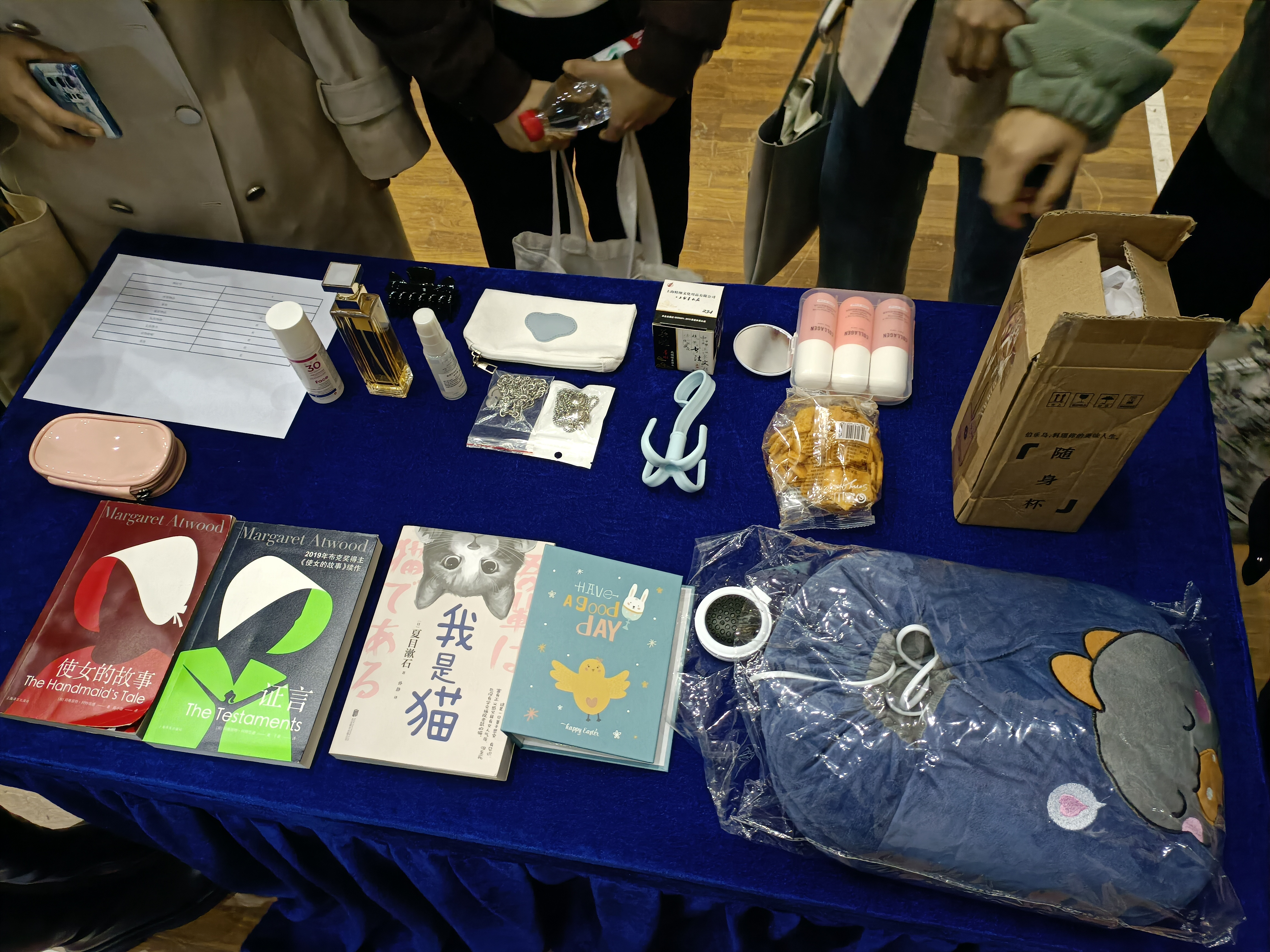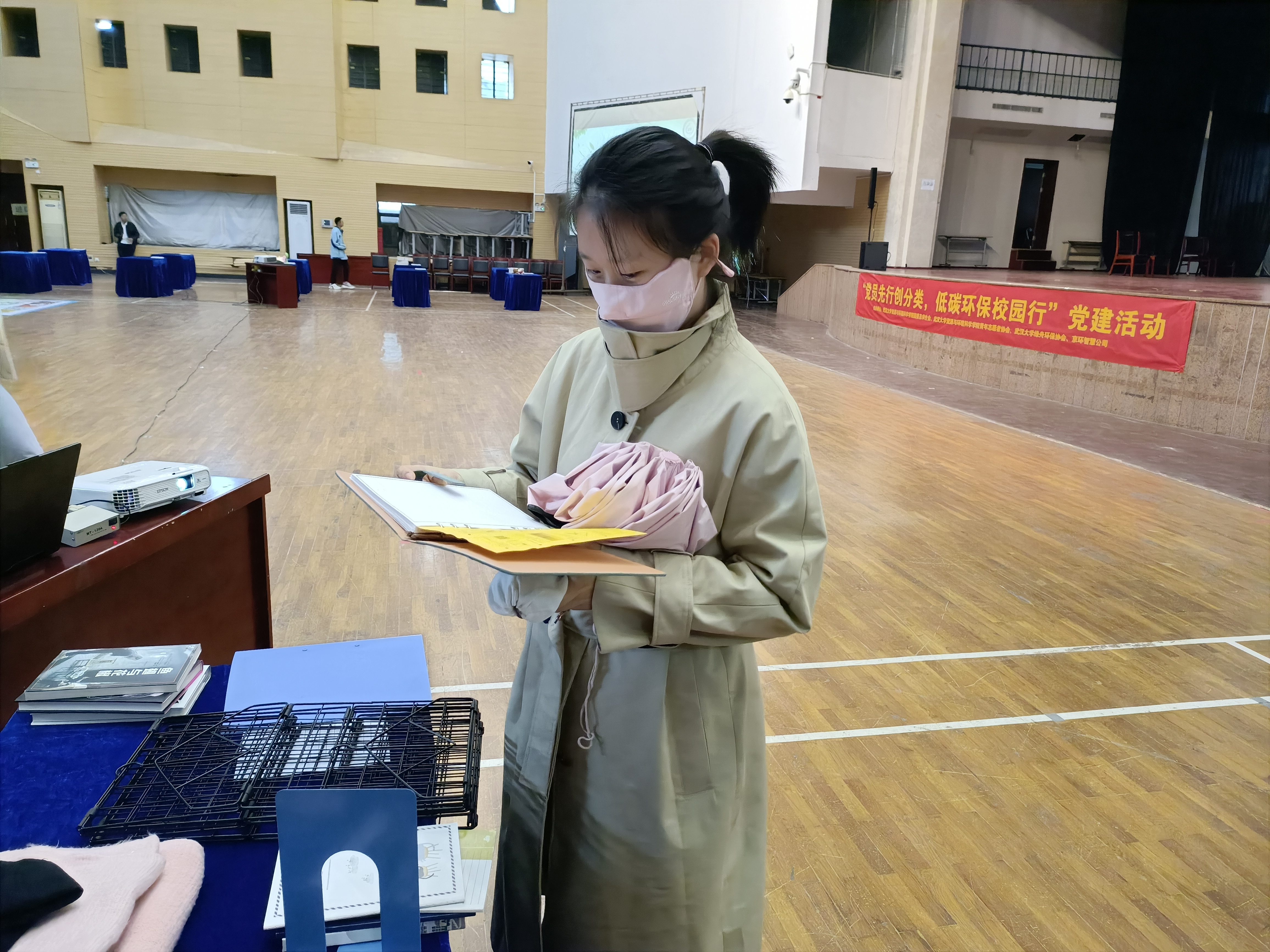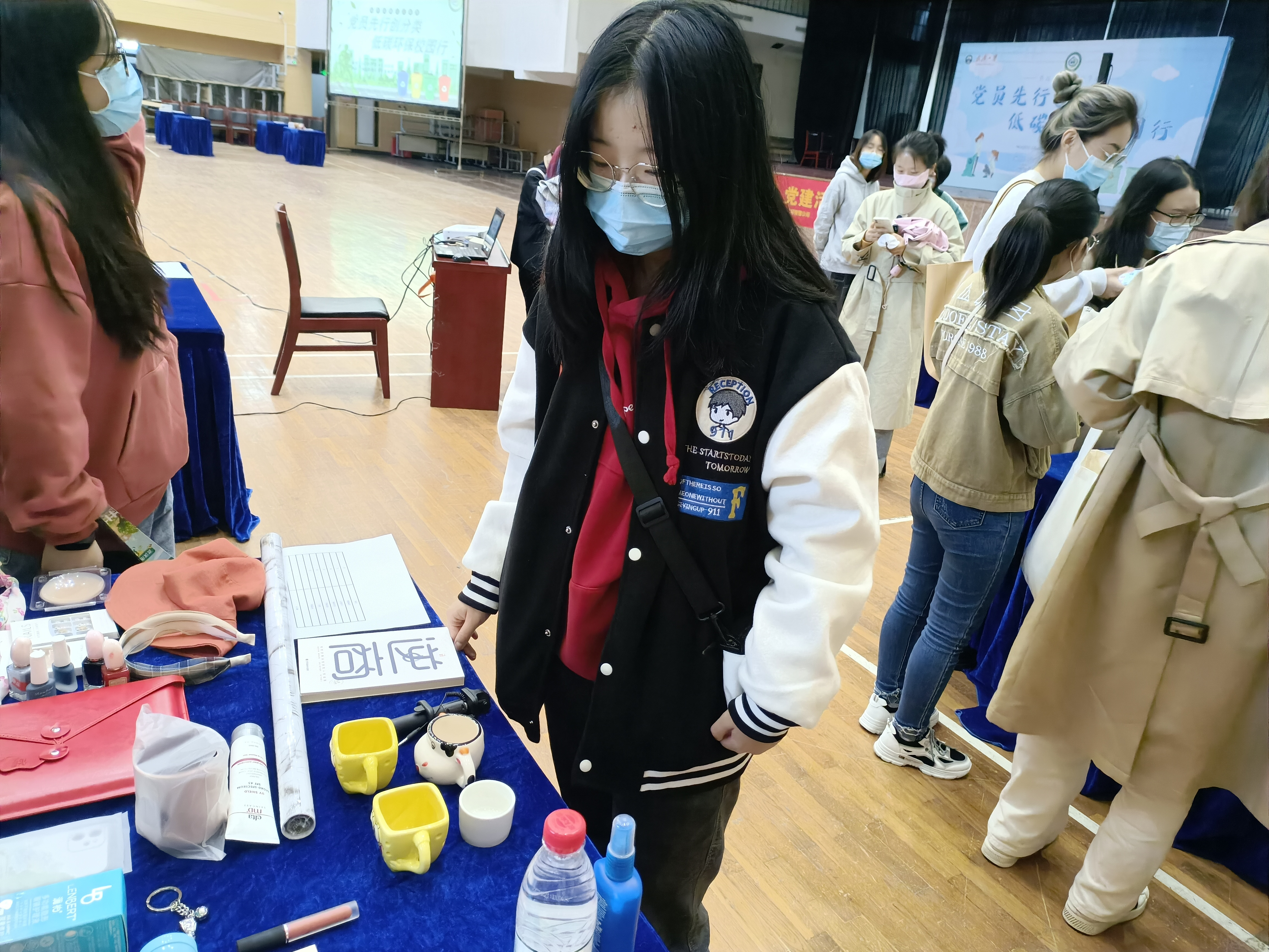下午14:00支部全体成员到达大学生活动中心,并将所携带的闲置物品置于支部摊位上,以待“交换”,刚整理完毕,本支部的摊位就吸引了许多同学前来,对这些物品表现出了浓厚的兴趣。