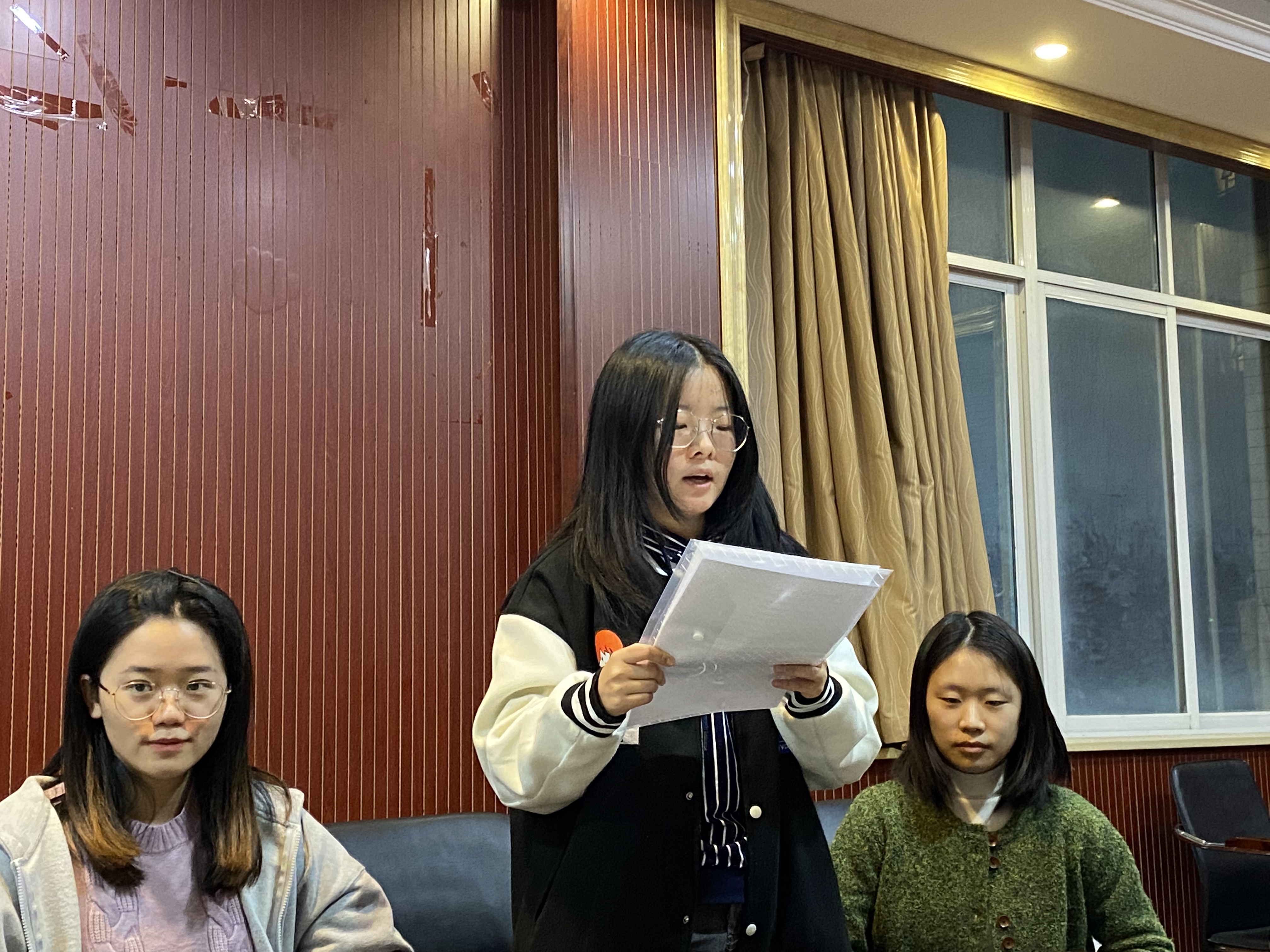 耿文静同志:2021年10月24日晚六点,地理科学与国土资源系第二党支部召开了党支部会议,辅导员李韩老师也参加了这次会议。在这次会议中,主要是关于一位同学转为预备党员和另一位同学转为正式党员的入党问题。这两位同学的入党发言,真诚而深刻,对我下一步转为正式党员有着深刻的启发和学习意义,更深刻地认识到成为一名党员的责任和光荣。随着会议的进行,使我的思想觉悟有了进一步的提高。从大家的批评与自我批评中,我应该做到有则改之,无则加勉。对于自己的不足需要积极去克服,对于自己的优点,更加需要好好保持。