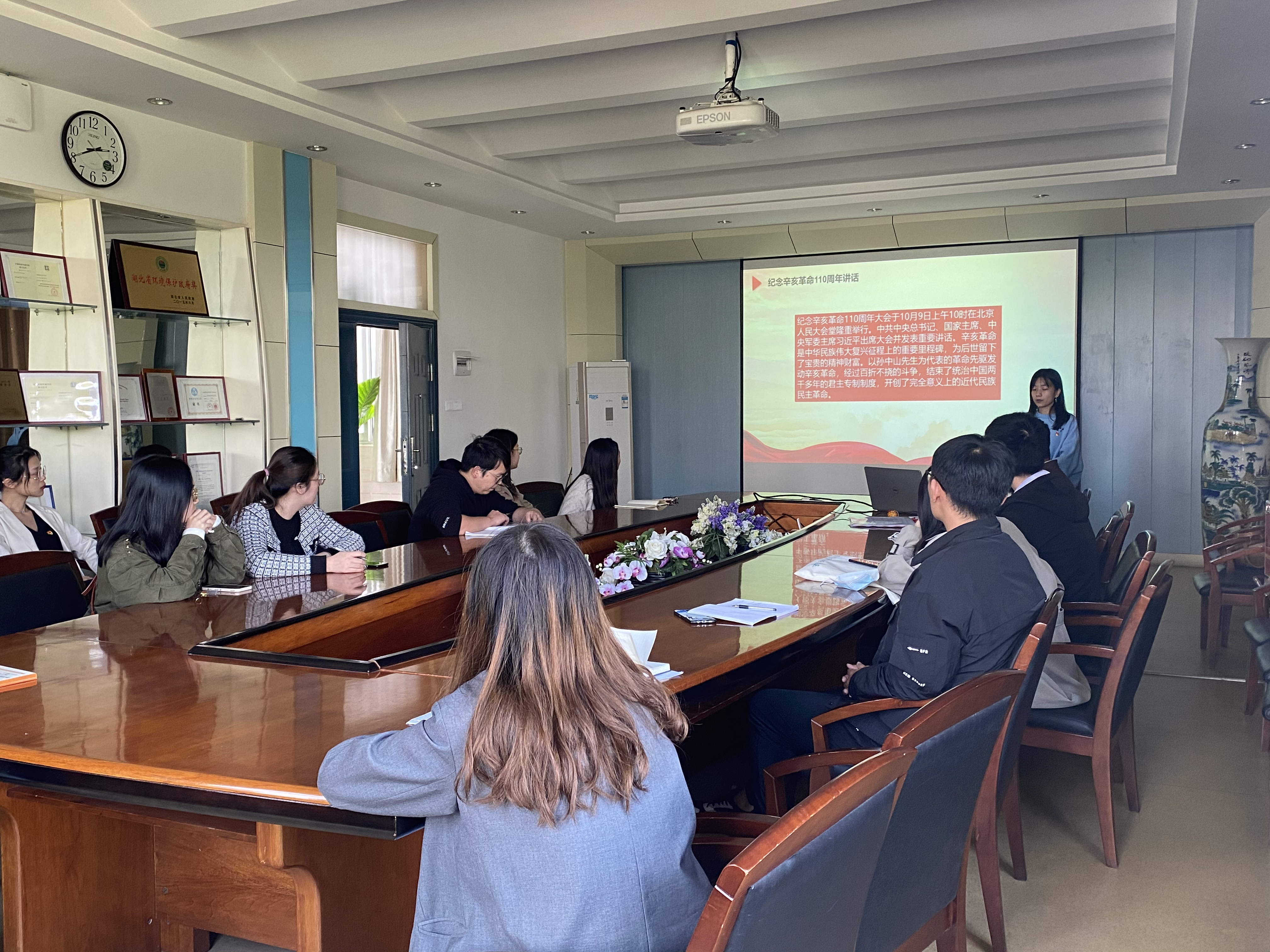 闫慧敏同志首先从辛亥革命的历史功绩和重大意义进行讲解,接下来抚今追昔,通过回顾总结中国共产党继承孙中山先生革命事业、团结带领人民不懈奋斗的光辉历程,支部成员深刻领会到实现中华民族伟大复兴,必须要坚持党的领导。闫慧敏同志还进一步阐述了辛亥革命110年来的5个历史启示,最后就台湾问题我们要郑重宣示坚持一个中国原则和“九二共识”,遏制“台独”分裂活动、捍卫国家主权和领土完整的坚强决心和坚定意志。