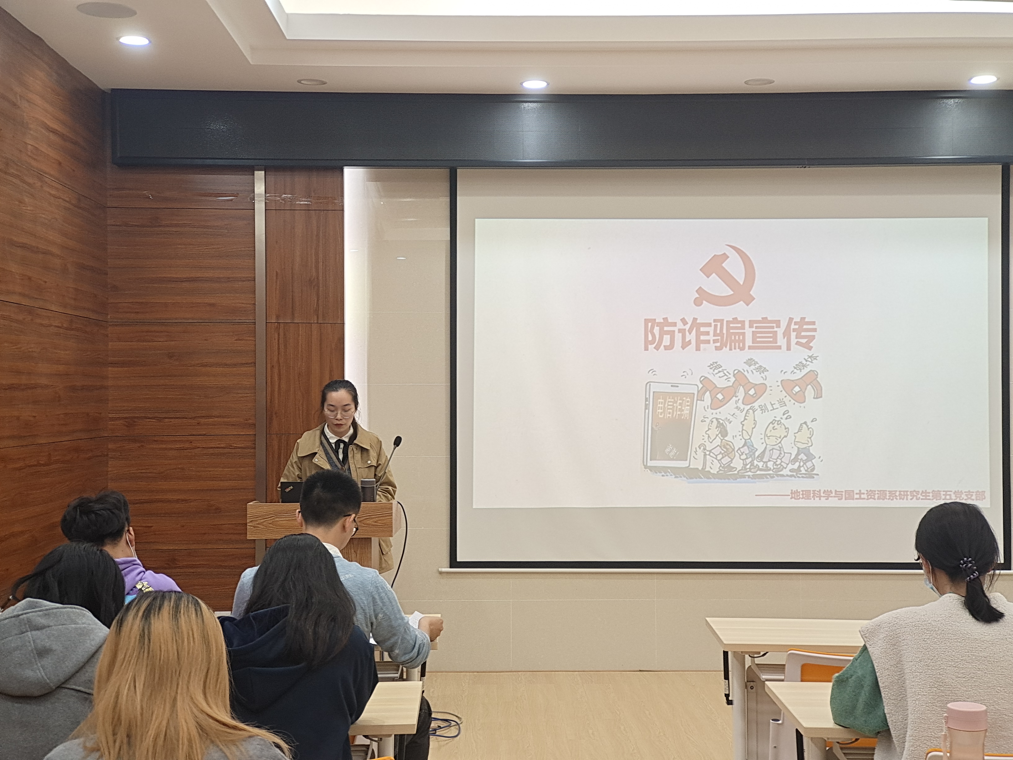 【支部党建】地理科学与国土资源系研究生第五党支部接收预备党员大会暨“防范诈骗宣传”活动