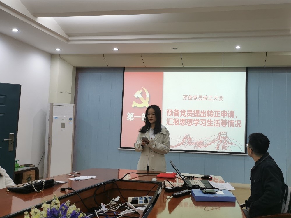 会议第一项议程是讨论预备党员李燚同志的转正问题。首先,由郑传帮同志介绍了会议的流程及参与会议的人员情况,并简要介绍了李燚同志的基本情况。随后,预备党员李燚同志向支部汇报预备期间的思想情况及学习、工作表现。